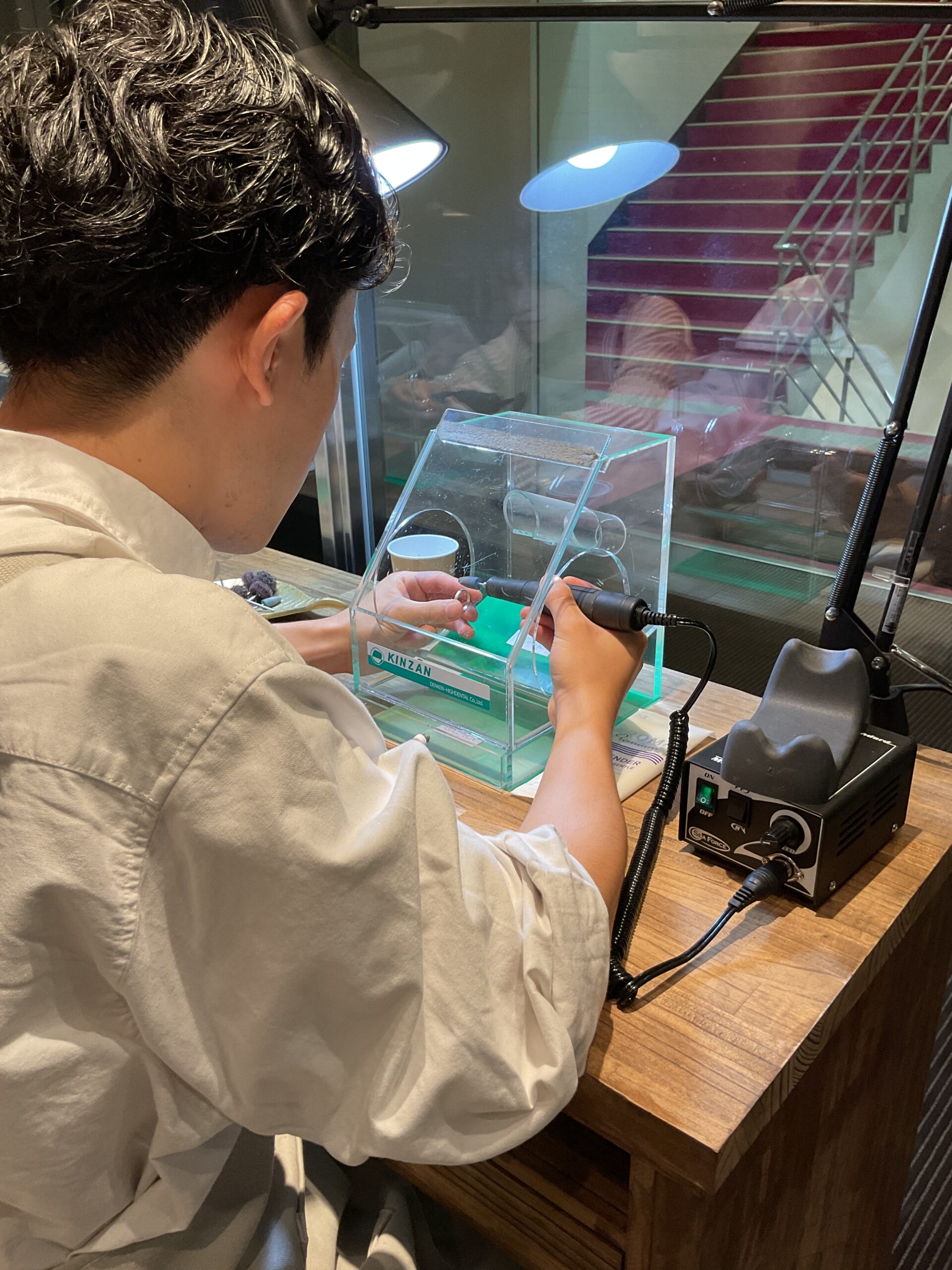 お二人が一生懸命制作されましたリングの内側には、レーザー刻印でお二人のお名前が刻まれます。