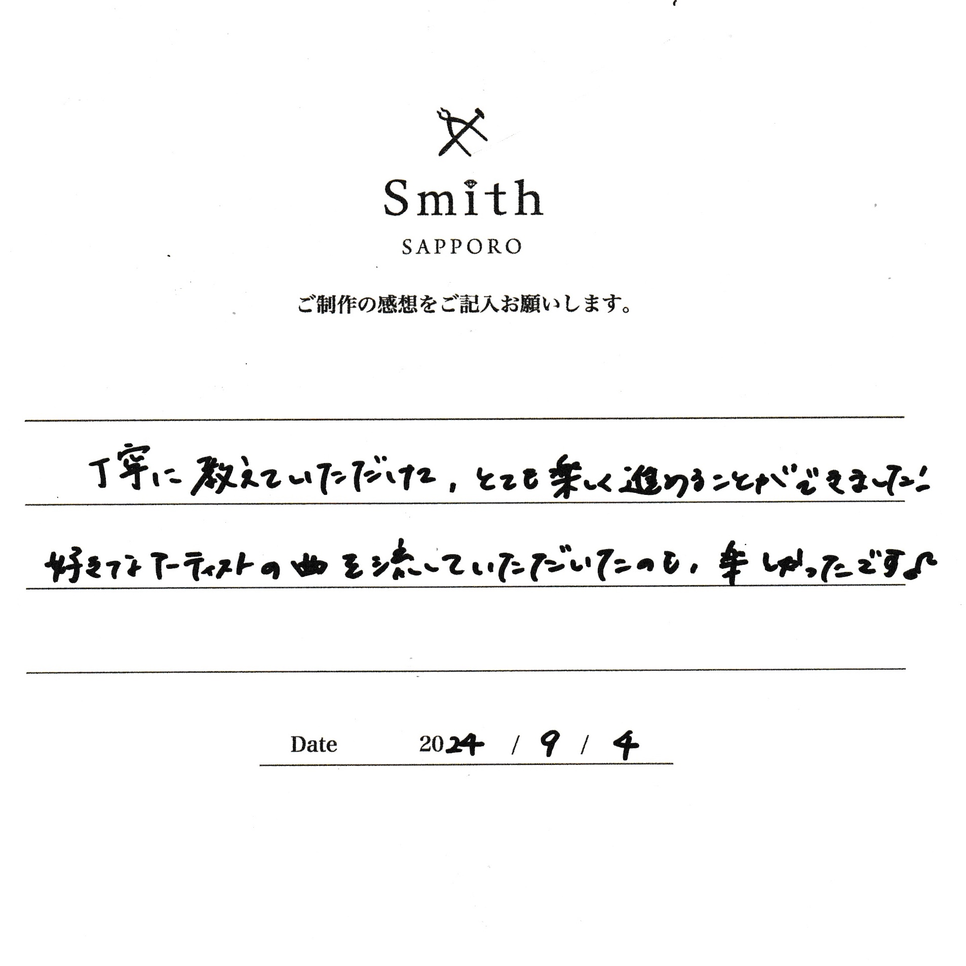 この度は、工房Smith京王プラザホテル札幌店で手作りペアリングのご制作誠にありがとうございました。