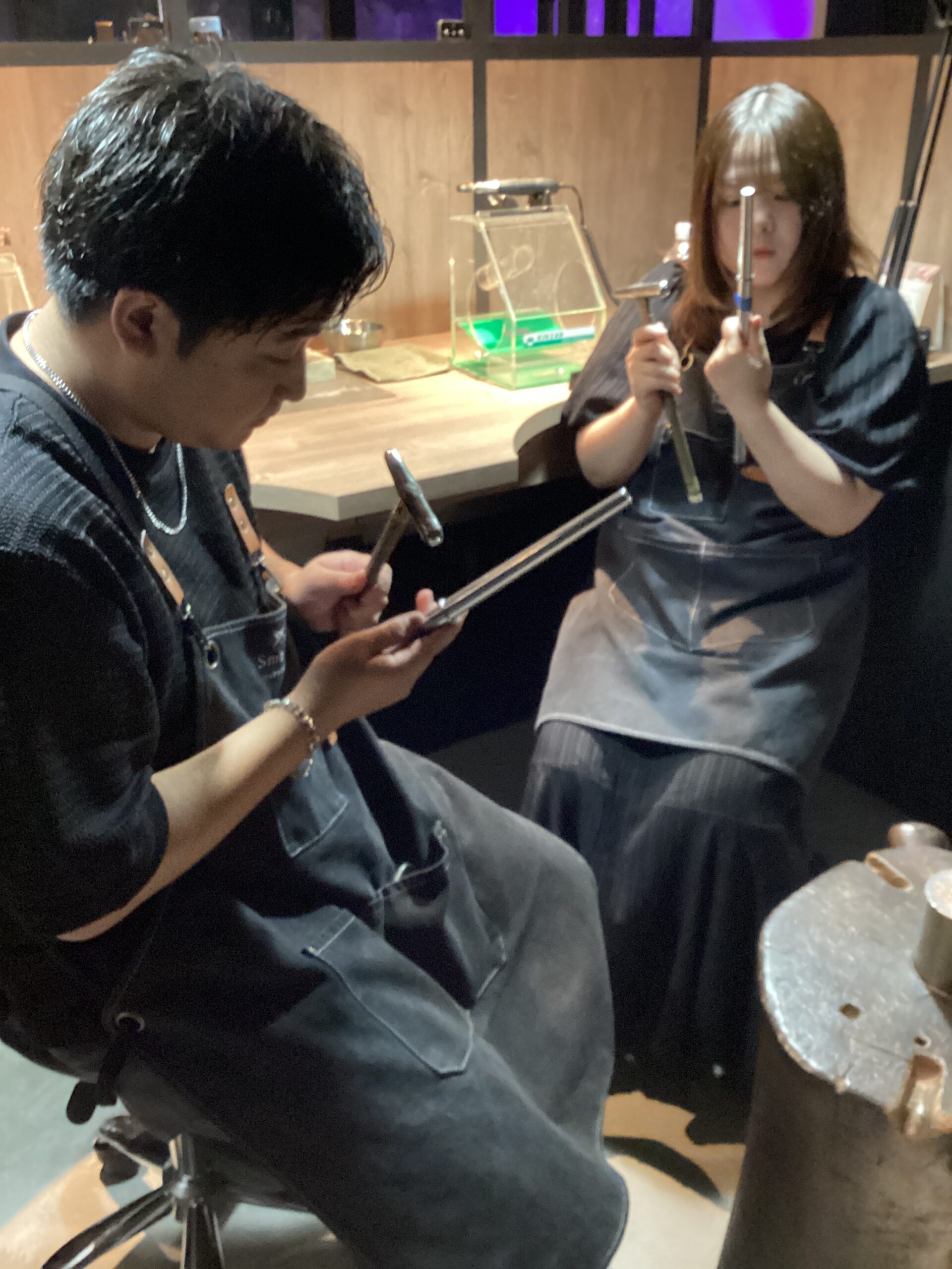 制作ではハンマーの模様をつける際に、慎重に大切に模様をつけていらっしゃいましたね。