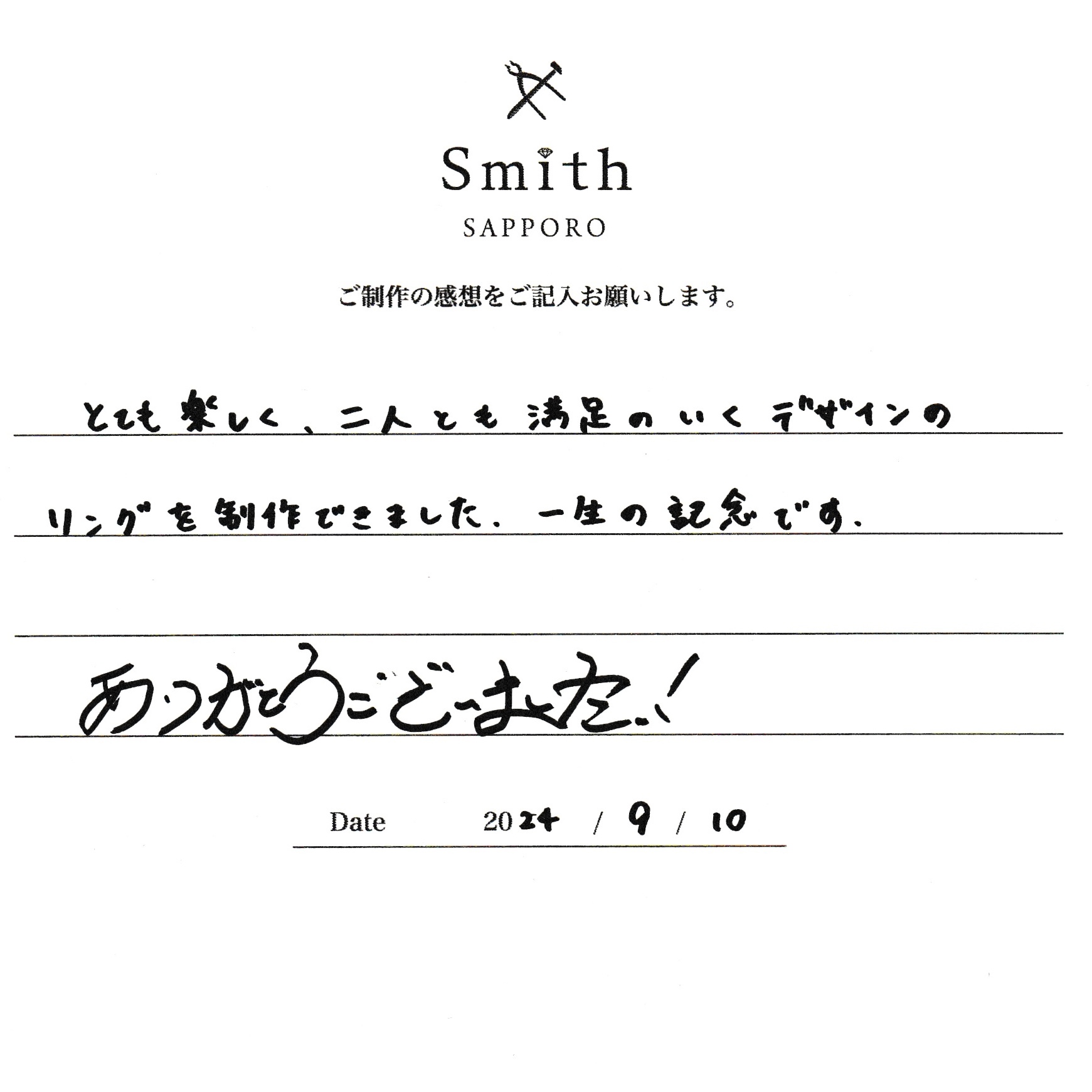 とても楽しく2人とも満足のいくデザインのリングを制作できました。