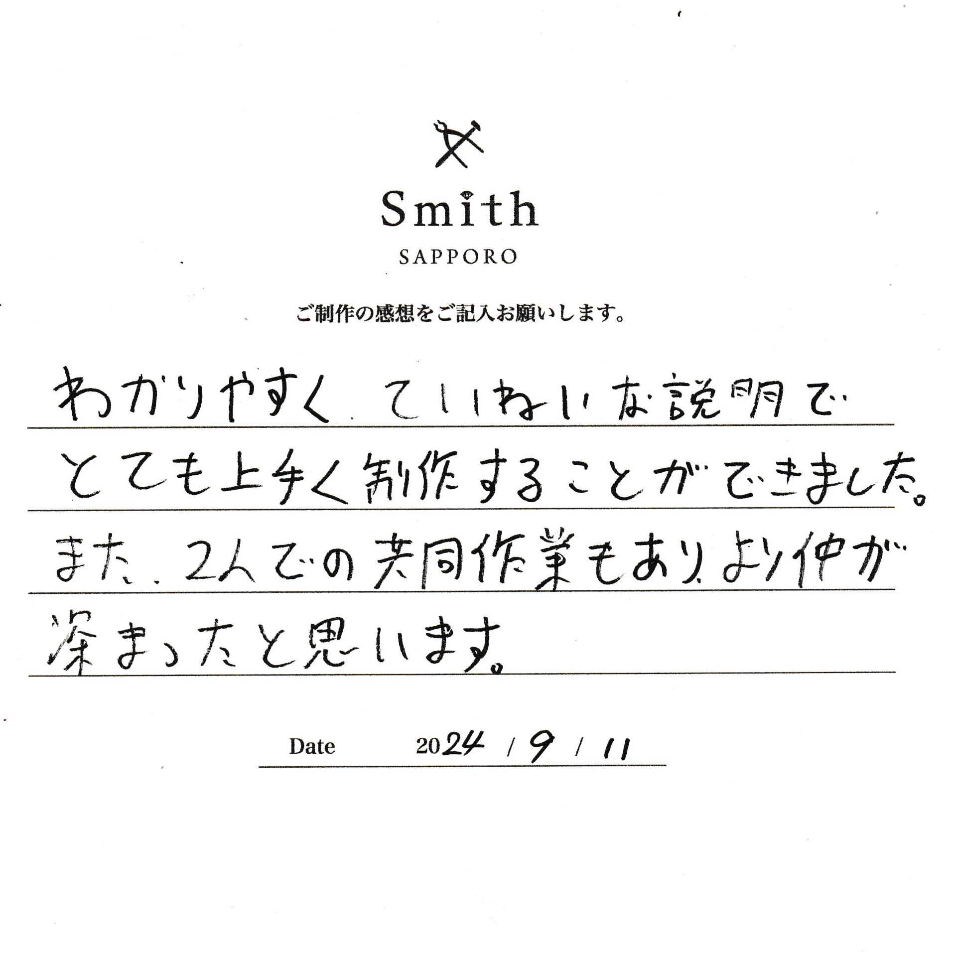 この度は、工房Smith京王プラザホテル札幌店で手作りペアリングのご制作誠にありがとうございました。