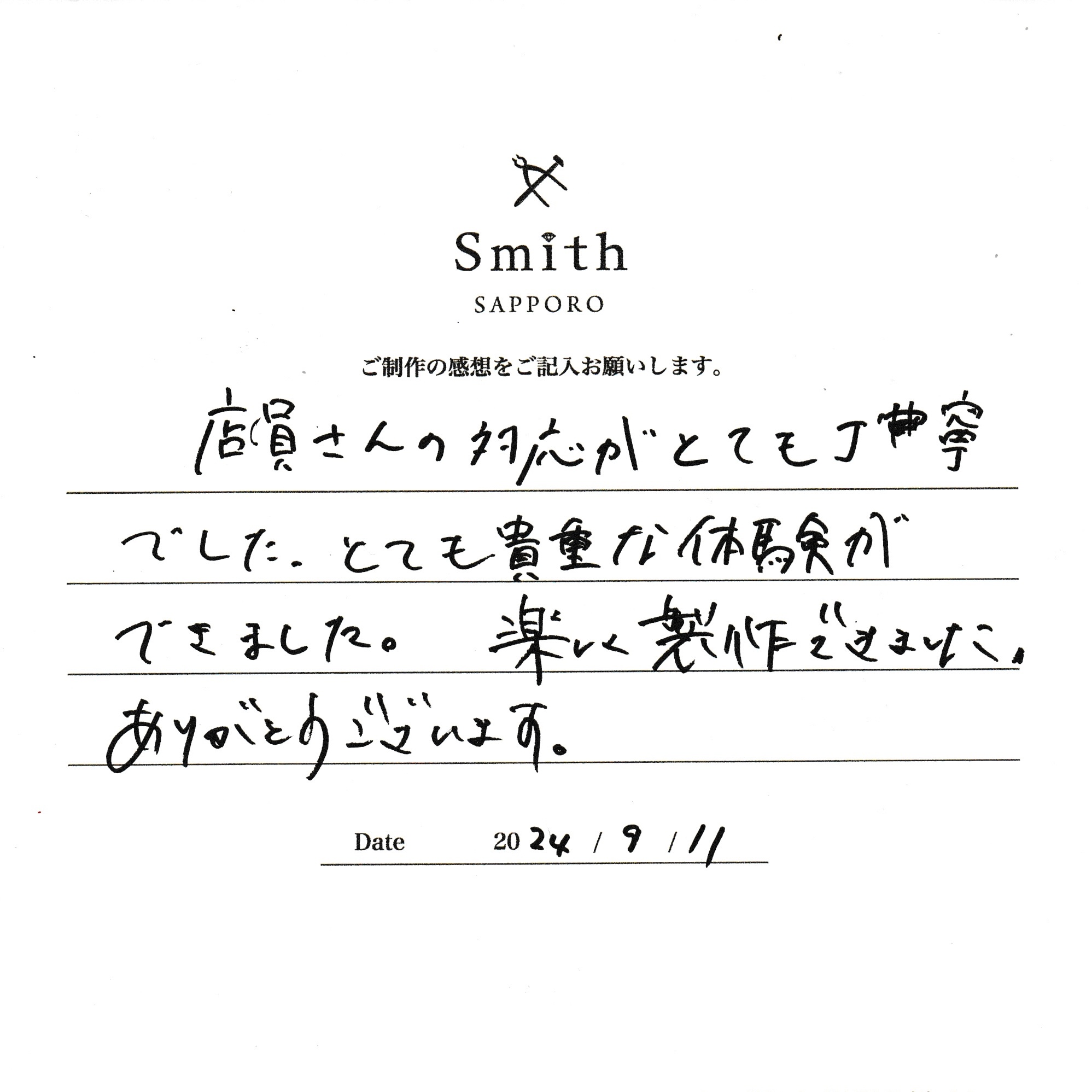 この度は、工房Smith京王プラザホテル札幌店で手作りペアリングのご制作誠にありがとうございました。