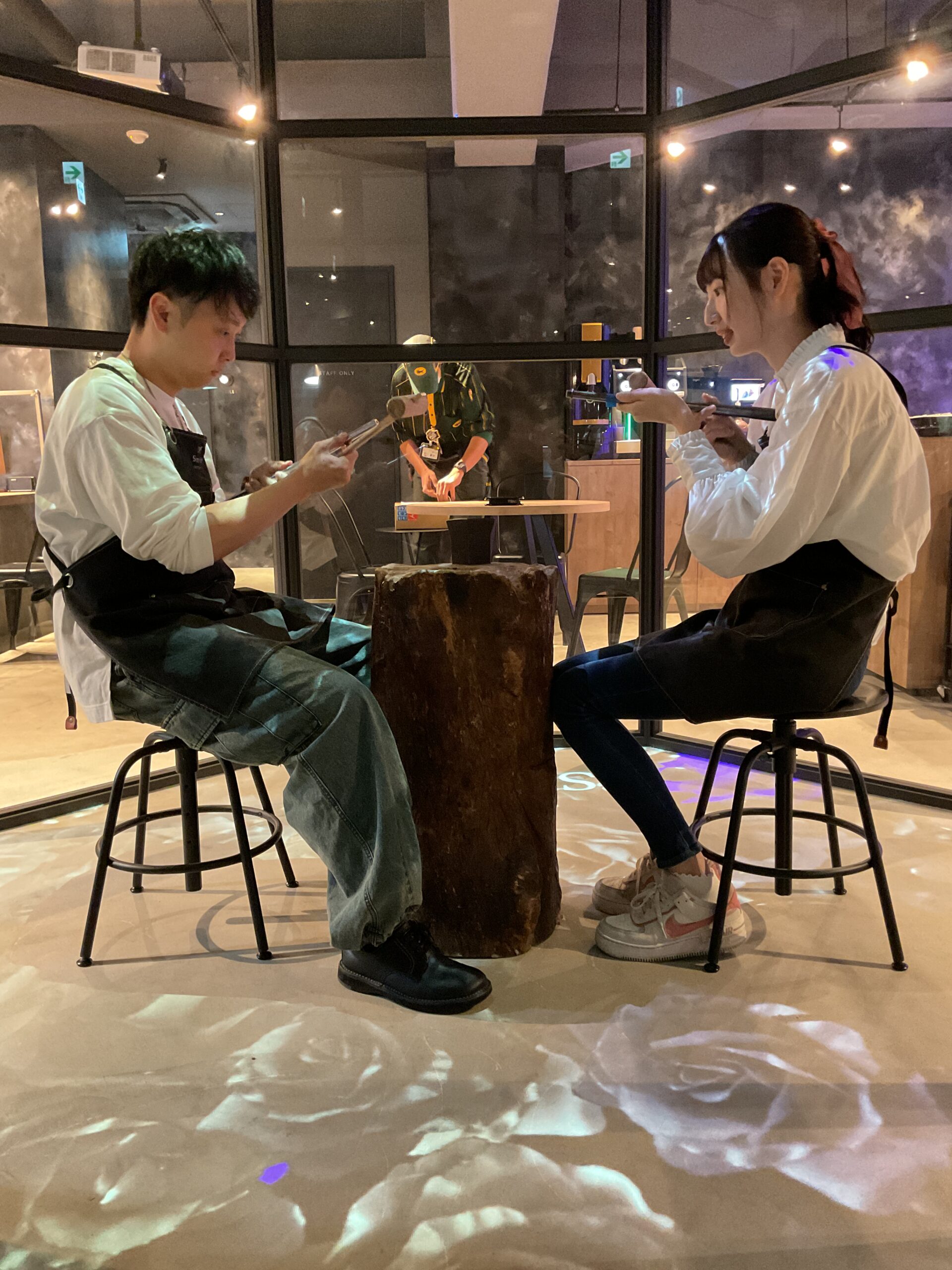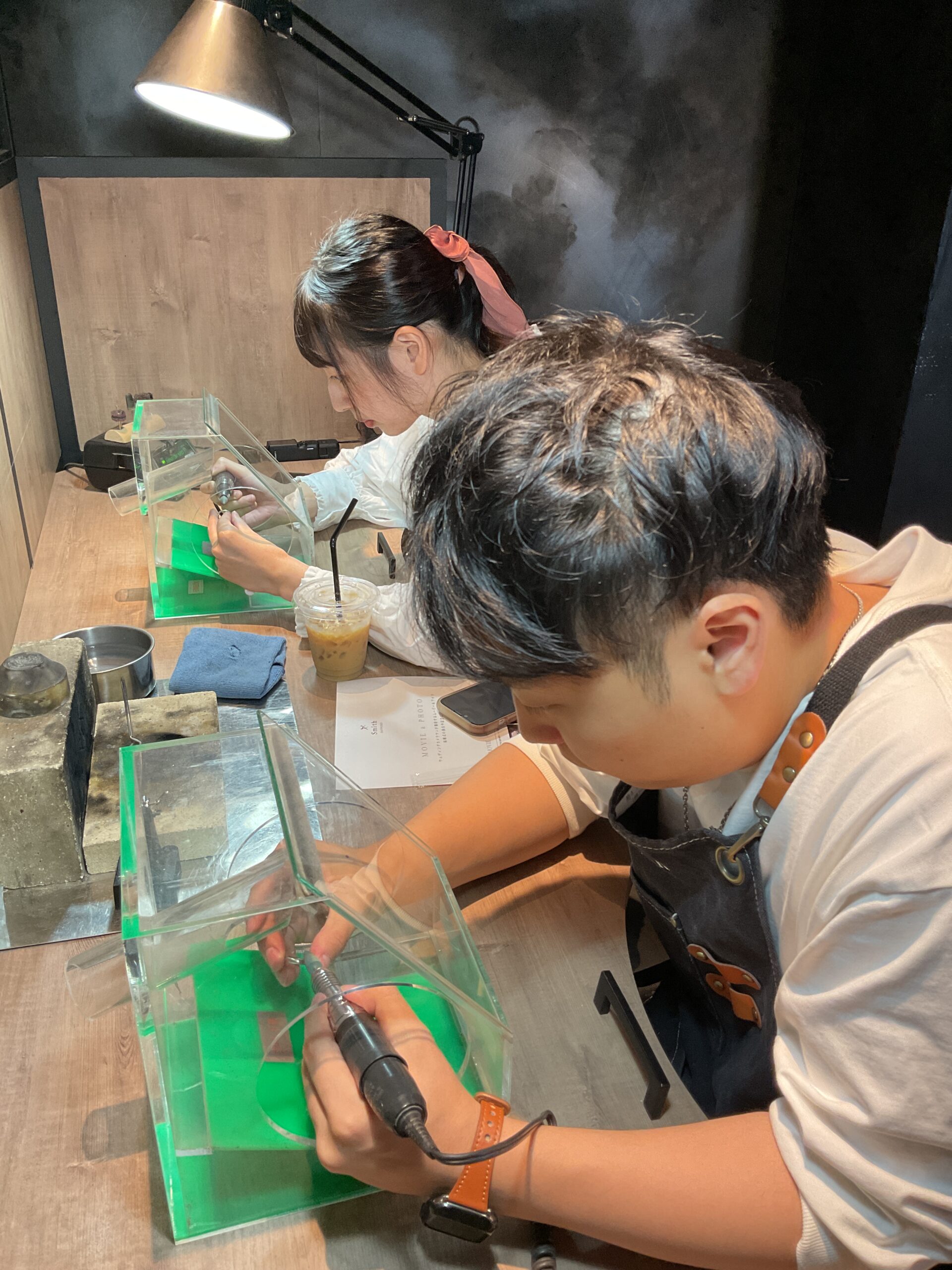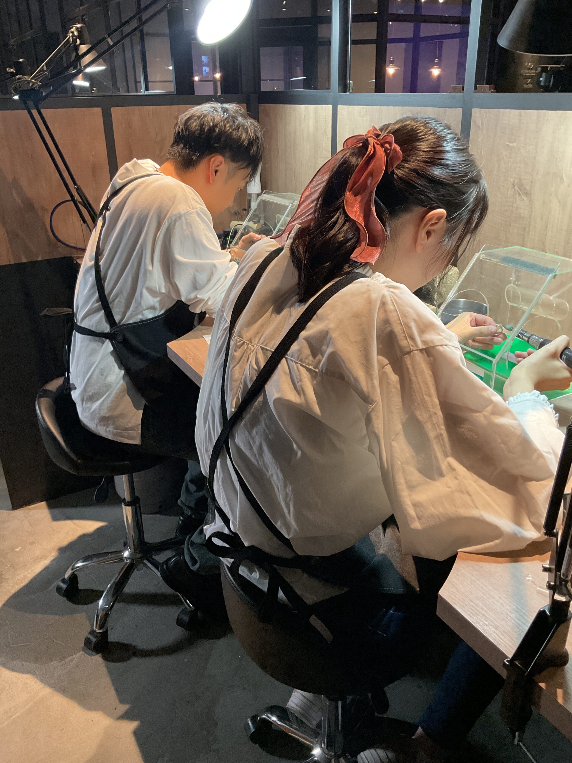 制作工程も楽しんでいただきながら、時折真剣に作業している様子は職人の雰囲気が出ておりました。