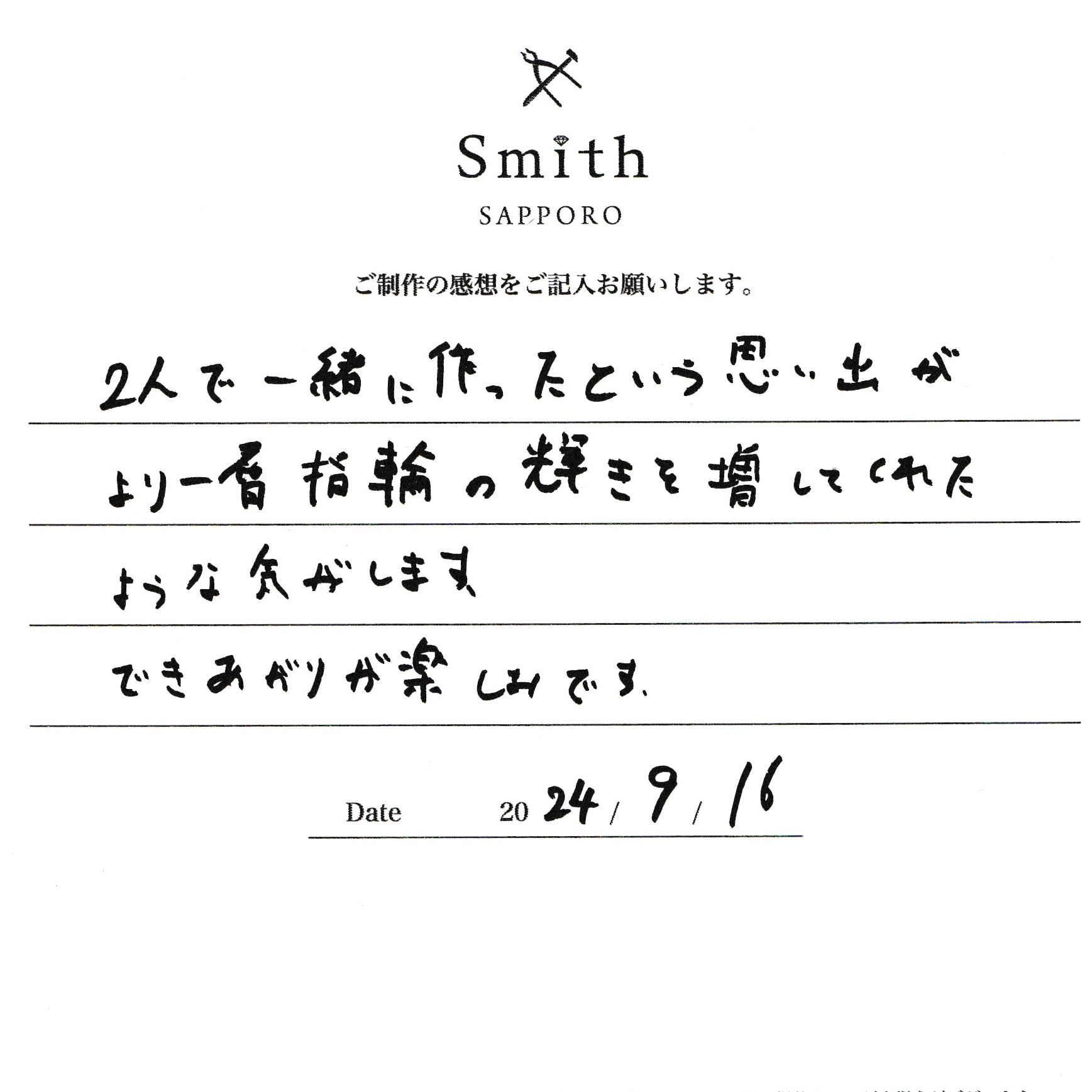 S様【2人で一緒に作ったという思い出がより一層指輪の輝きを増してくれたような気がします】