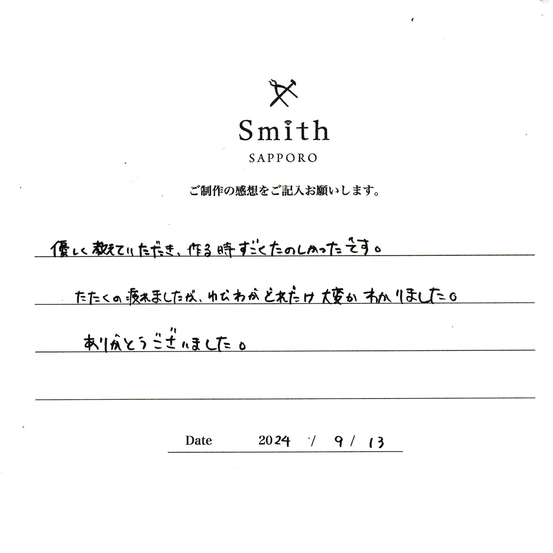 この度は、工房Smith京王プラザホテル札幌店で手作りペアリングのご制作誠にありがとうございました。