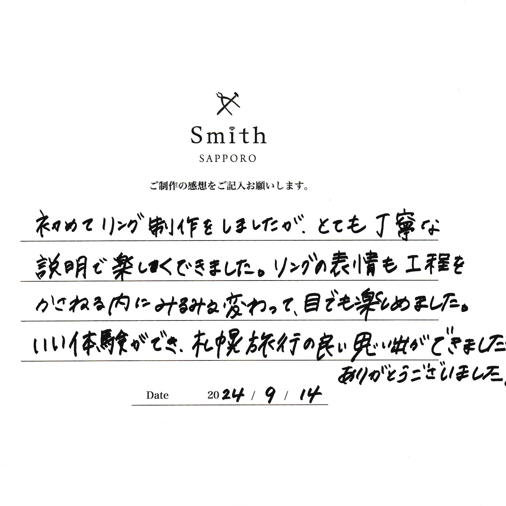 ご家族で北海道の旅行記念でお揃いのリングをご作成いただきました。