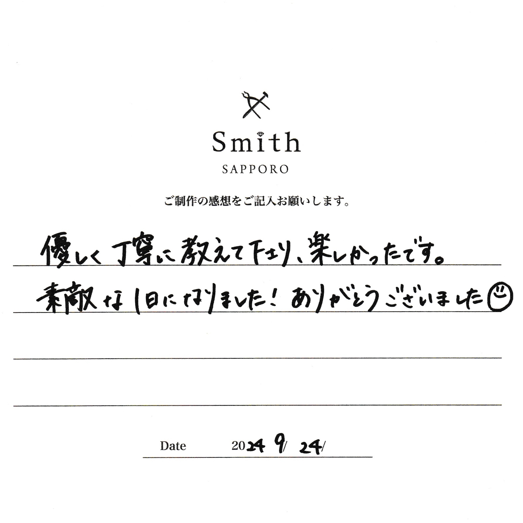 優しく丁寧に教えてくださり、楽しかったです。