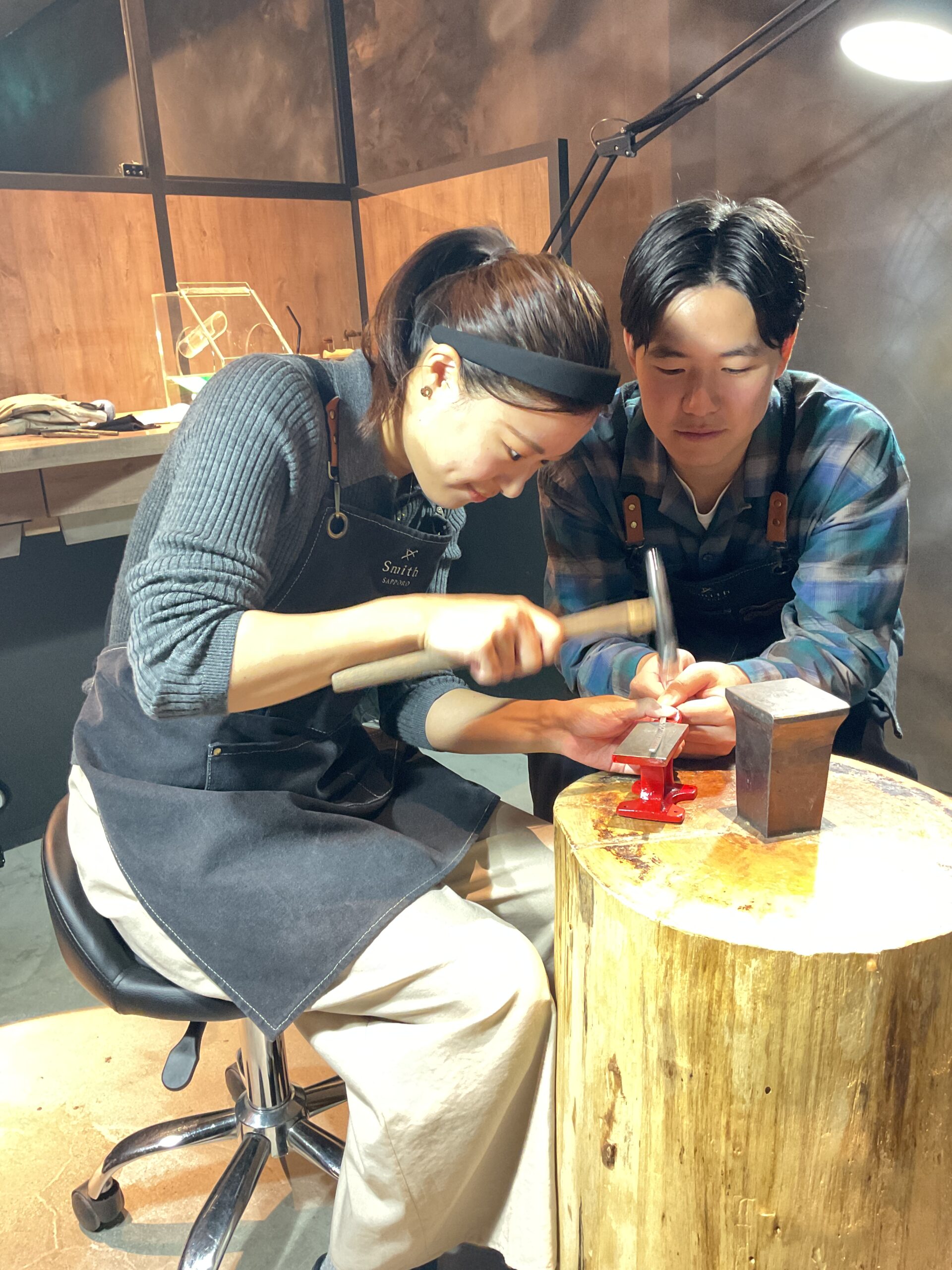 特にお互いのバングルに捻りを加えたり、一緒にハンマー模様を打っている姿、どのお写真も笑顔が素敵で仲良しなお二人に癒されました。
