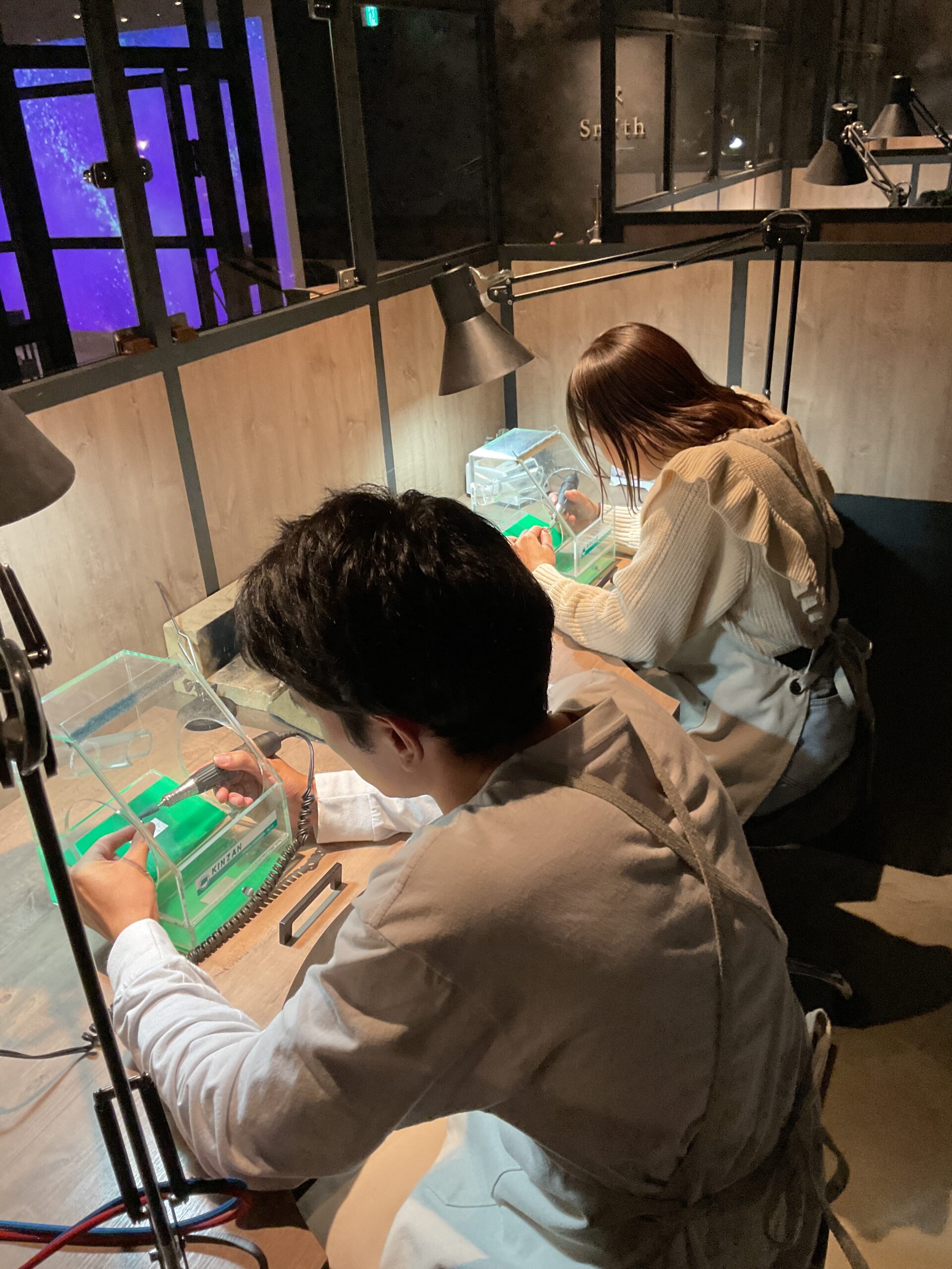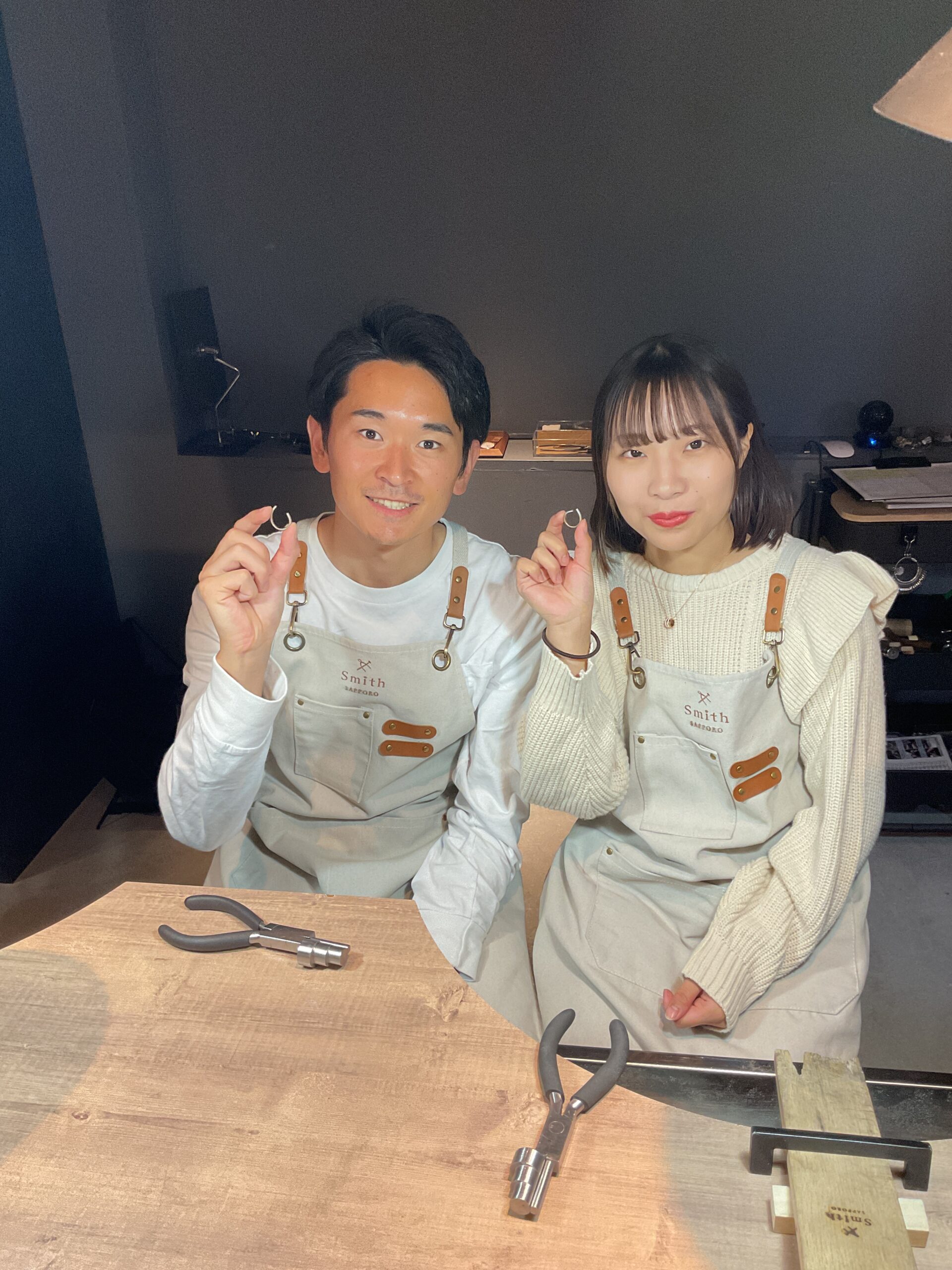 お互いに作り合う指輪は、既製品にはない温かみがございます。様々な工具での作業は大変だったかと存じますが、終始笑顔でご制作いただきとても嬉しいです。