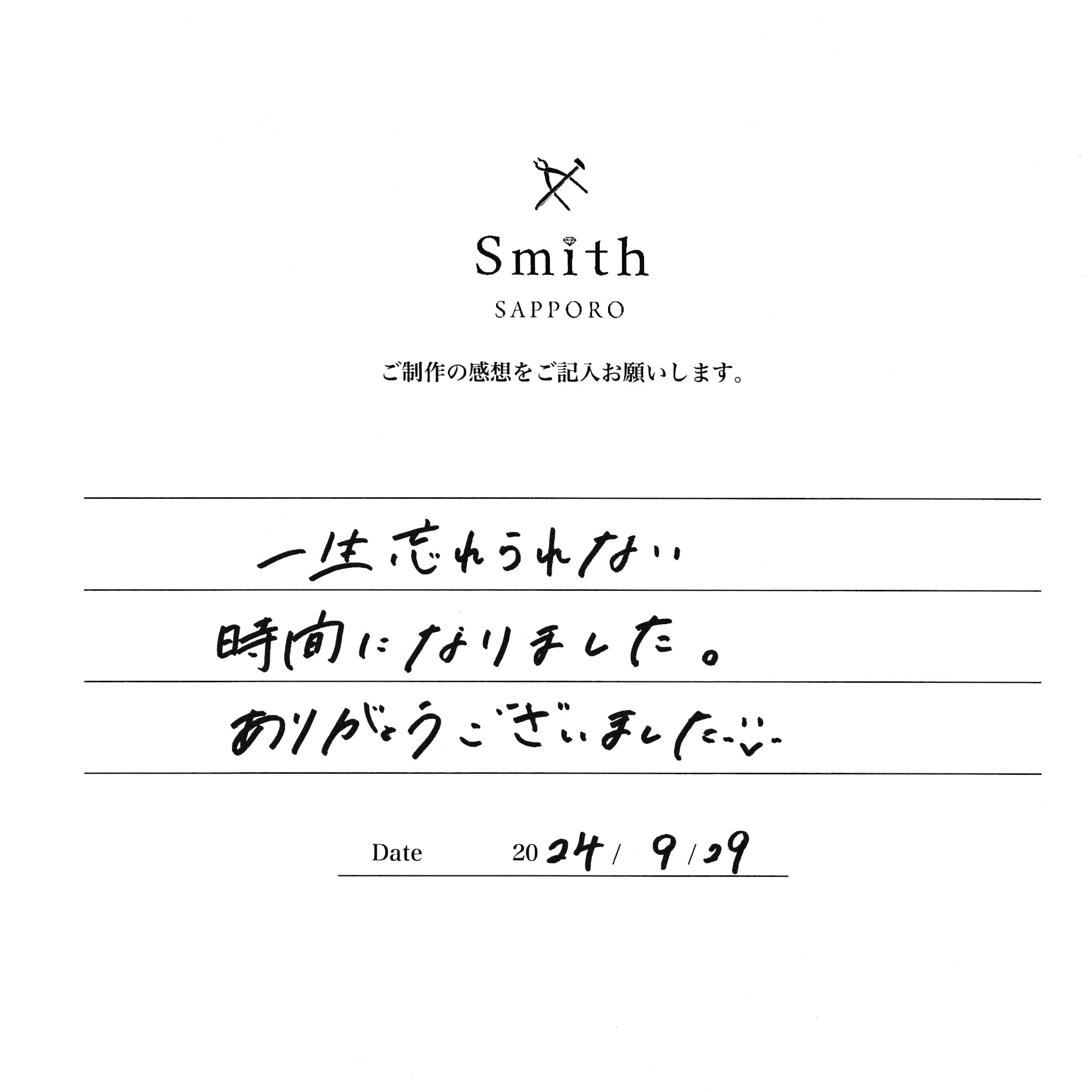この度は工房スミス札幌本店にて、手作り結婚指輪をご制作いただきまして誠にありがとうございます。