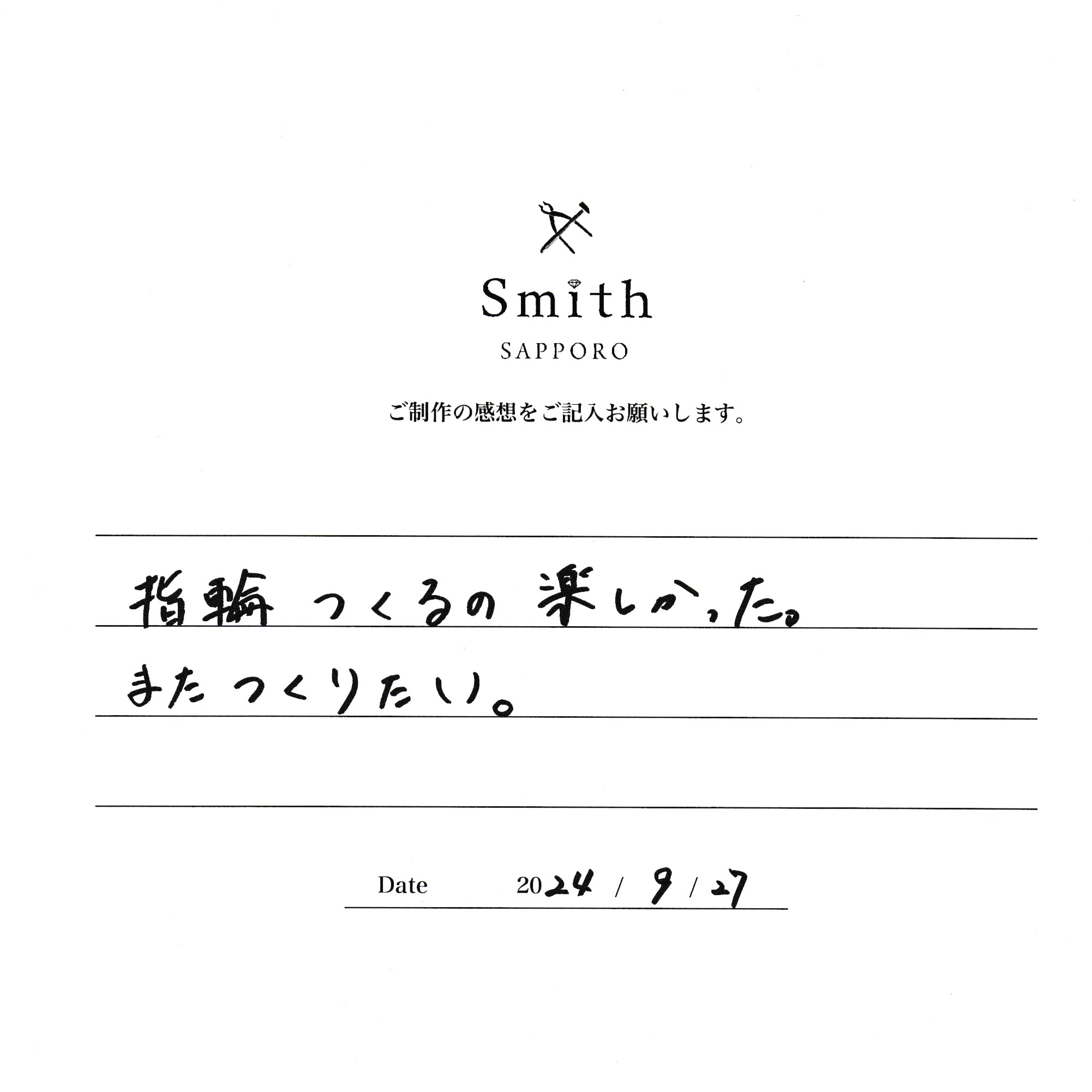 指輪作るの楽しかった。