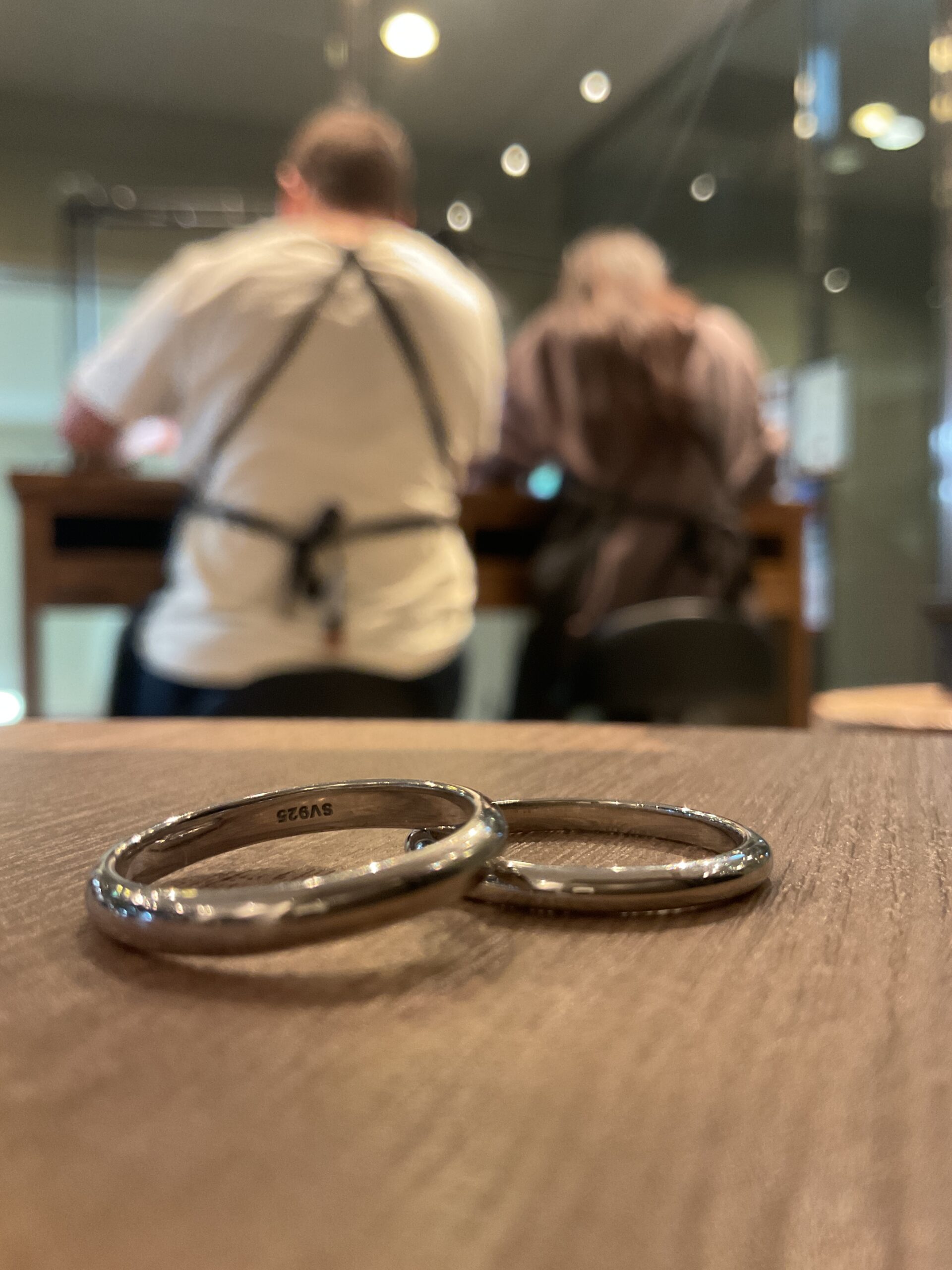 6・3ミリ幅の鏡面リングに、内側にはお二人のイニシャルを刻印し、更に変色防止コーティングを施されましたね。