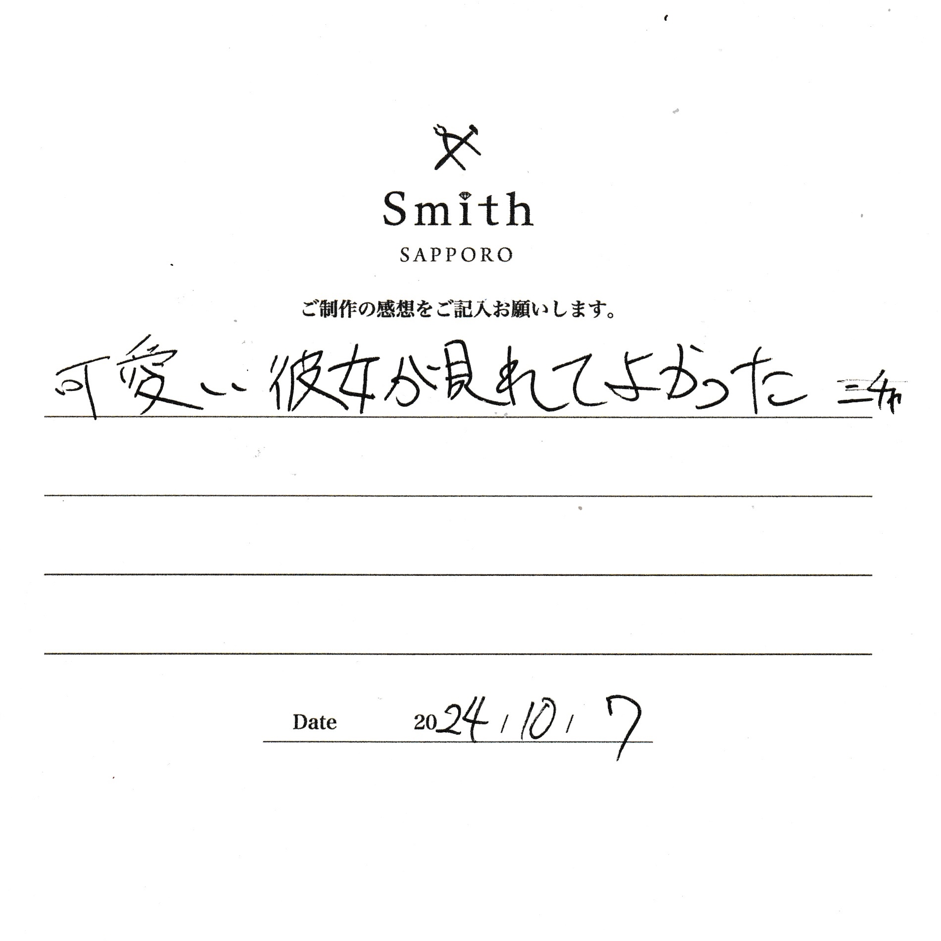 この度は、工房Smith京王プラザホテル札幌店で手作りペアリングのご制作誠にありがとうございました。
