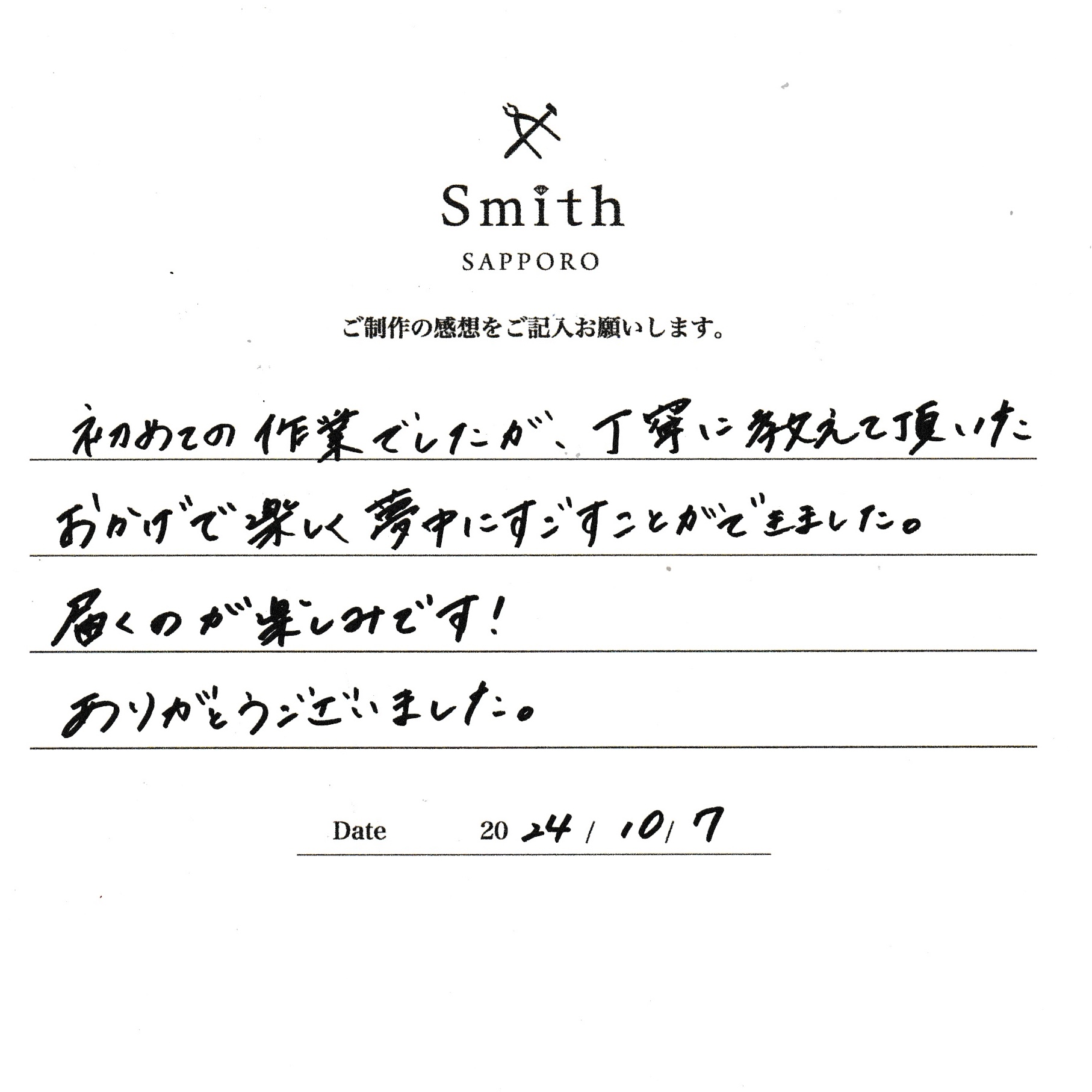 この度は、工房Smith京王プラザホテル札幌店で手作りペアリングのご制作誠にありがとうございました。