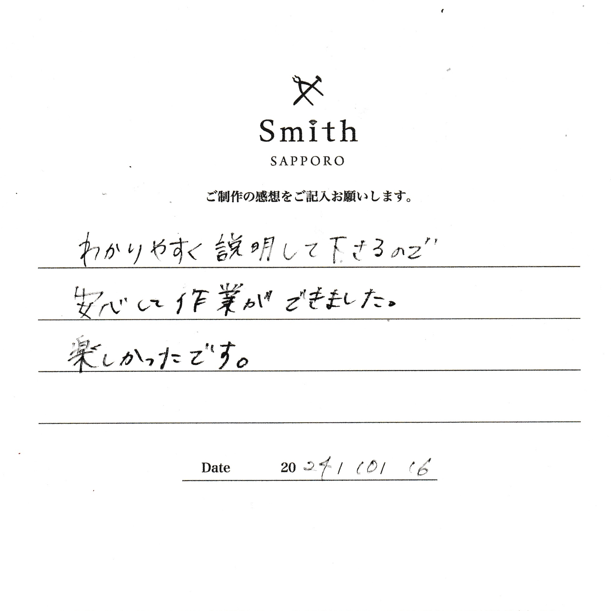 この度は、工房Smith京王プラザホテル札幌店で手作りペアリングのご制作誠にありがとうございました。