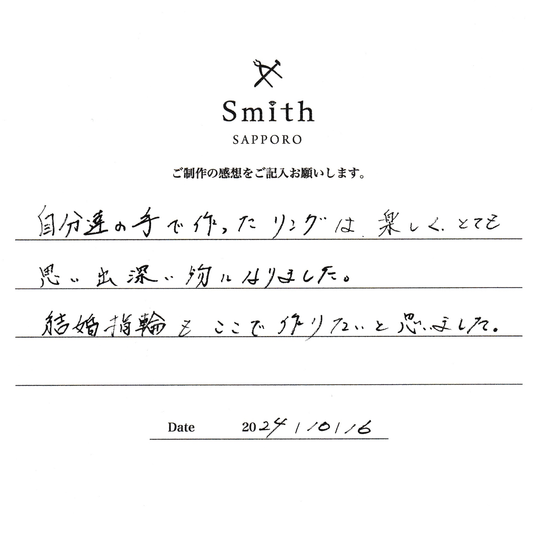 この度は、工房Smith京王プラザホテル札幌店で手作りペアリングのご制作誠にありがとうございました。