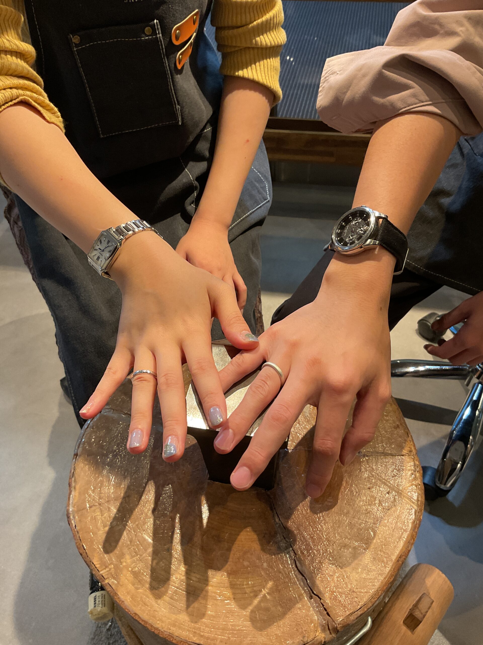 内側にはお二人のお名前が刻まれ、唯一無二のペアリングになりましたね。