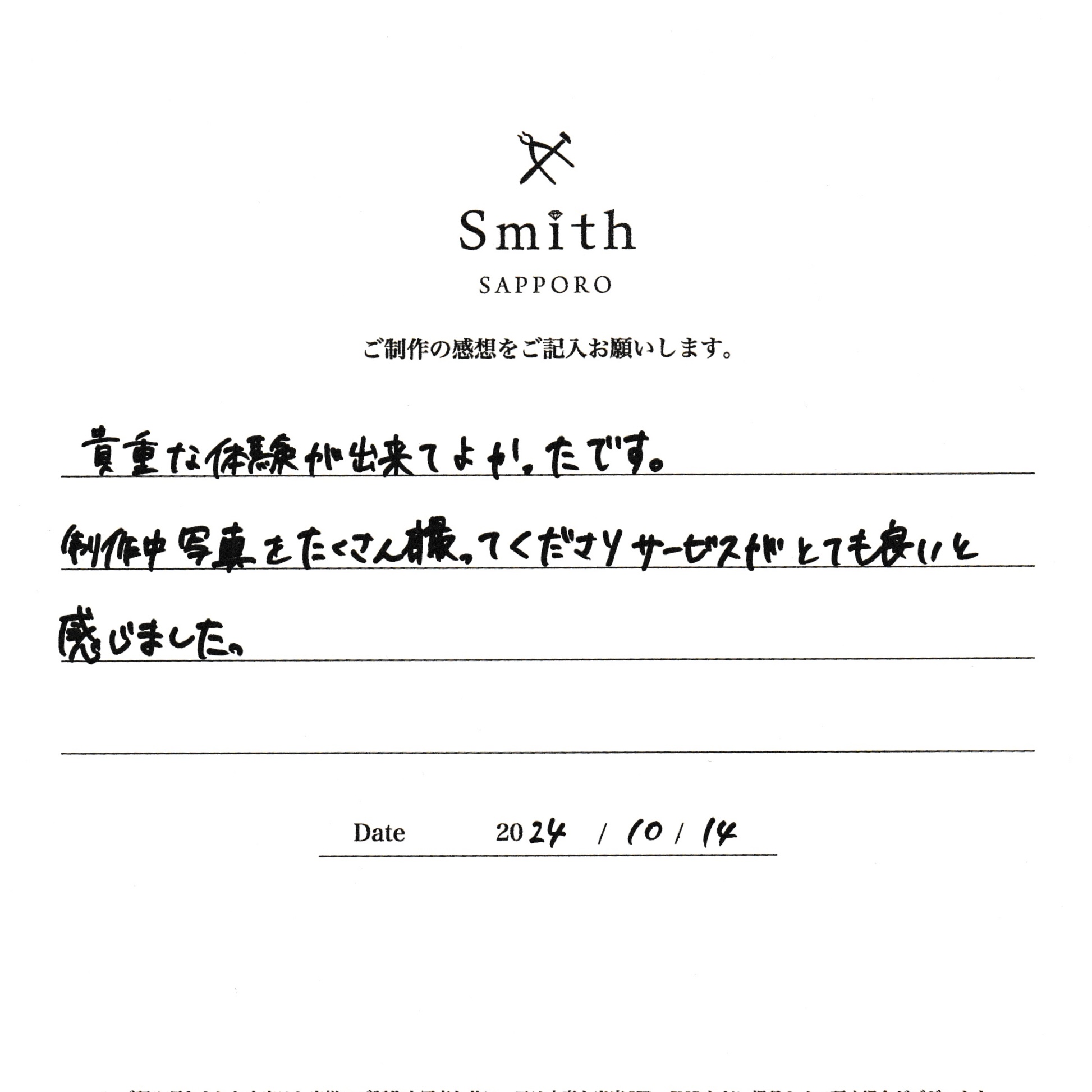 この度は、工房Smith京王プラザホテル札幌店で手作りペアリングのご制作誠にありがとうございました。