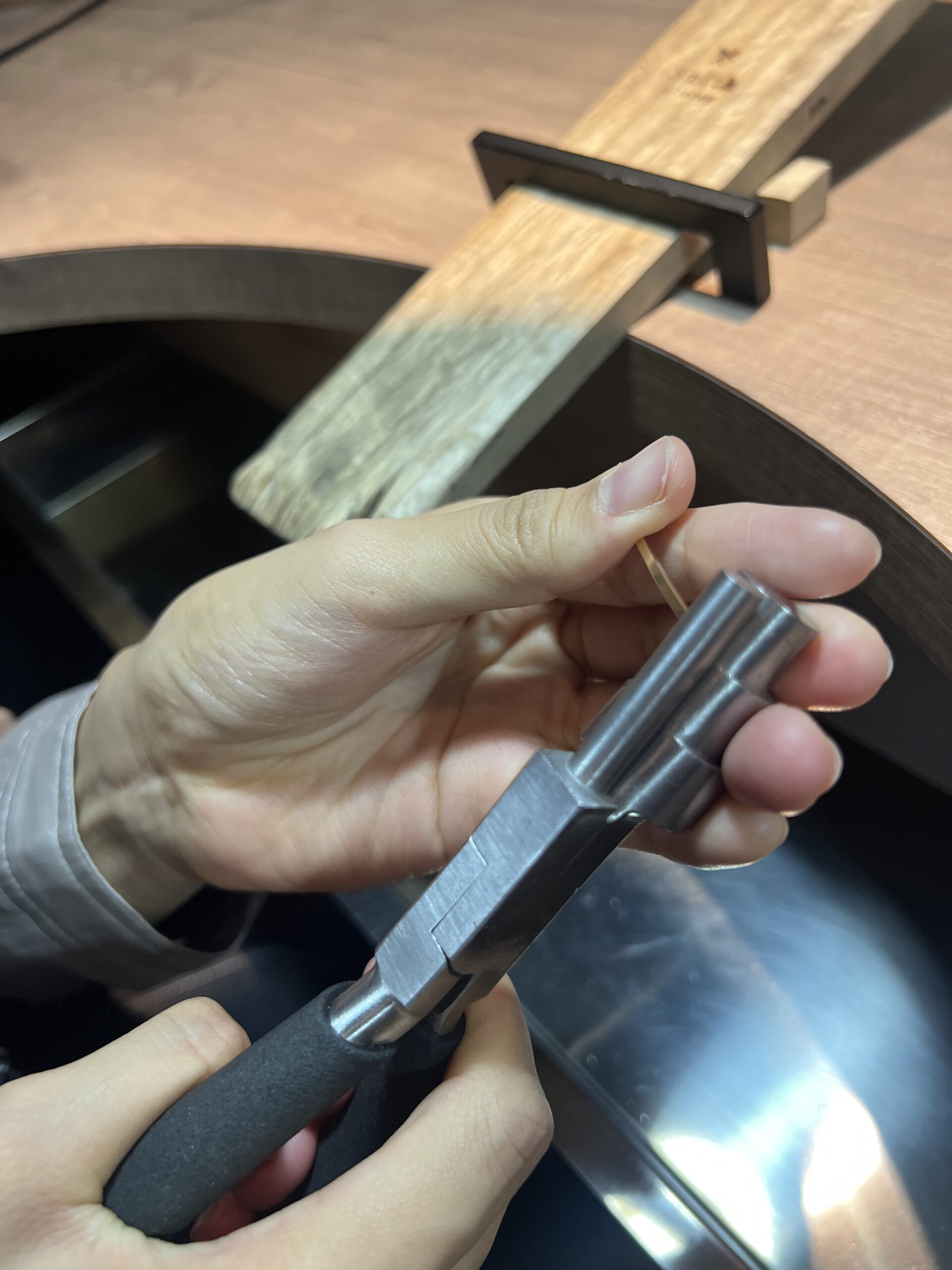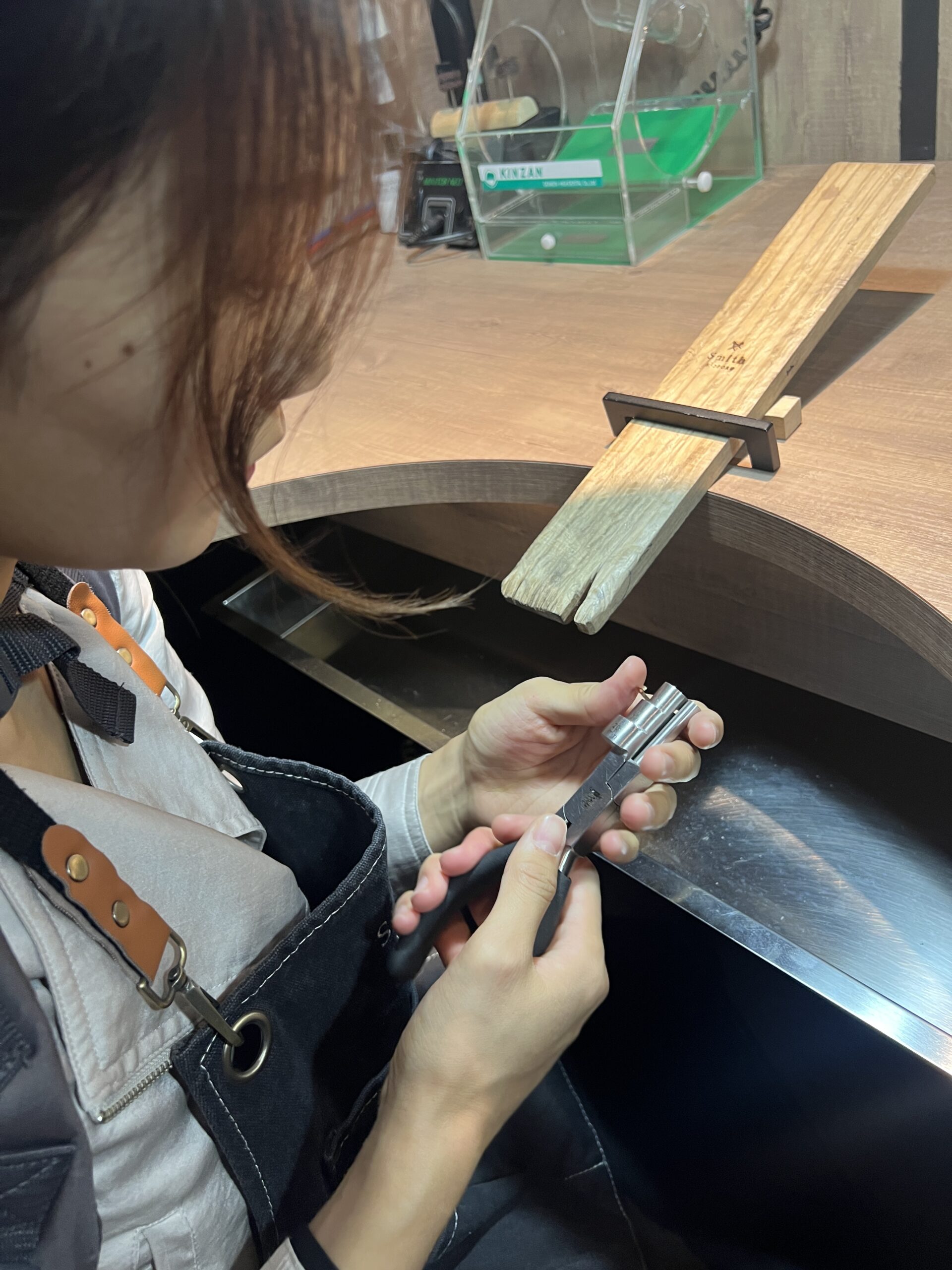 前日に京王プラザホテル店にてシルバーリングもご制作頂いていたので、作業はとてもスムーズで、お子さんもママの背中から興味深々で覗き込んでいたのが、とても可愛らしく印象的でした。