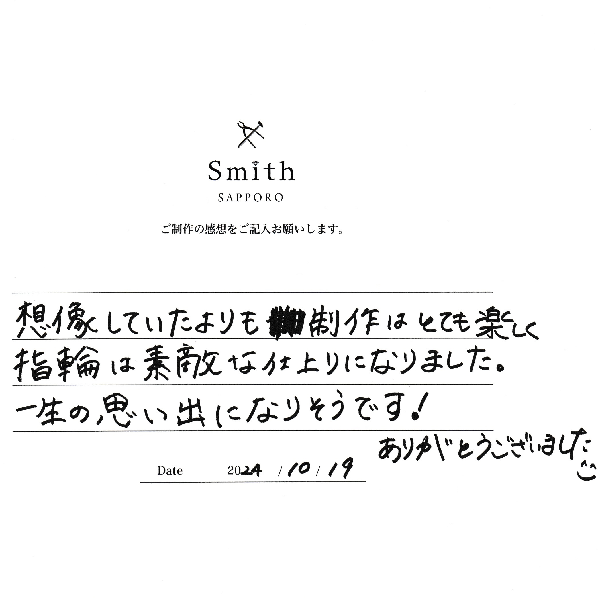 想像していたよりも制作はとても楽しく、指輪は素敵な仕上がりになりました。