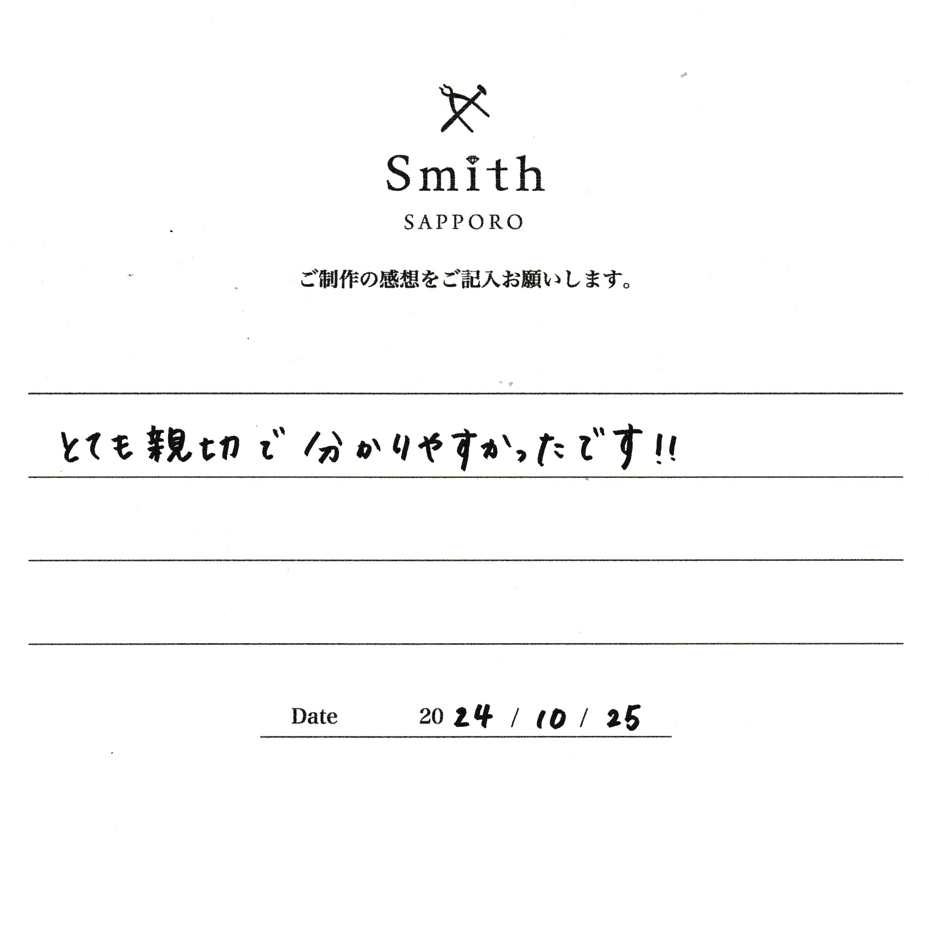 この度は、工房Smith京王プラザホテル札幌店で手作りペアリングのご制作誠にありがとうございました。