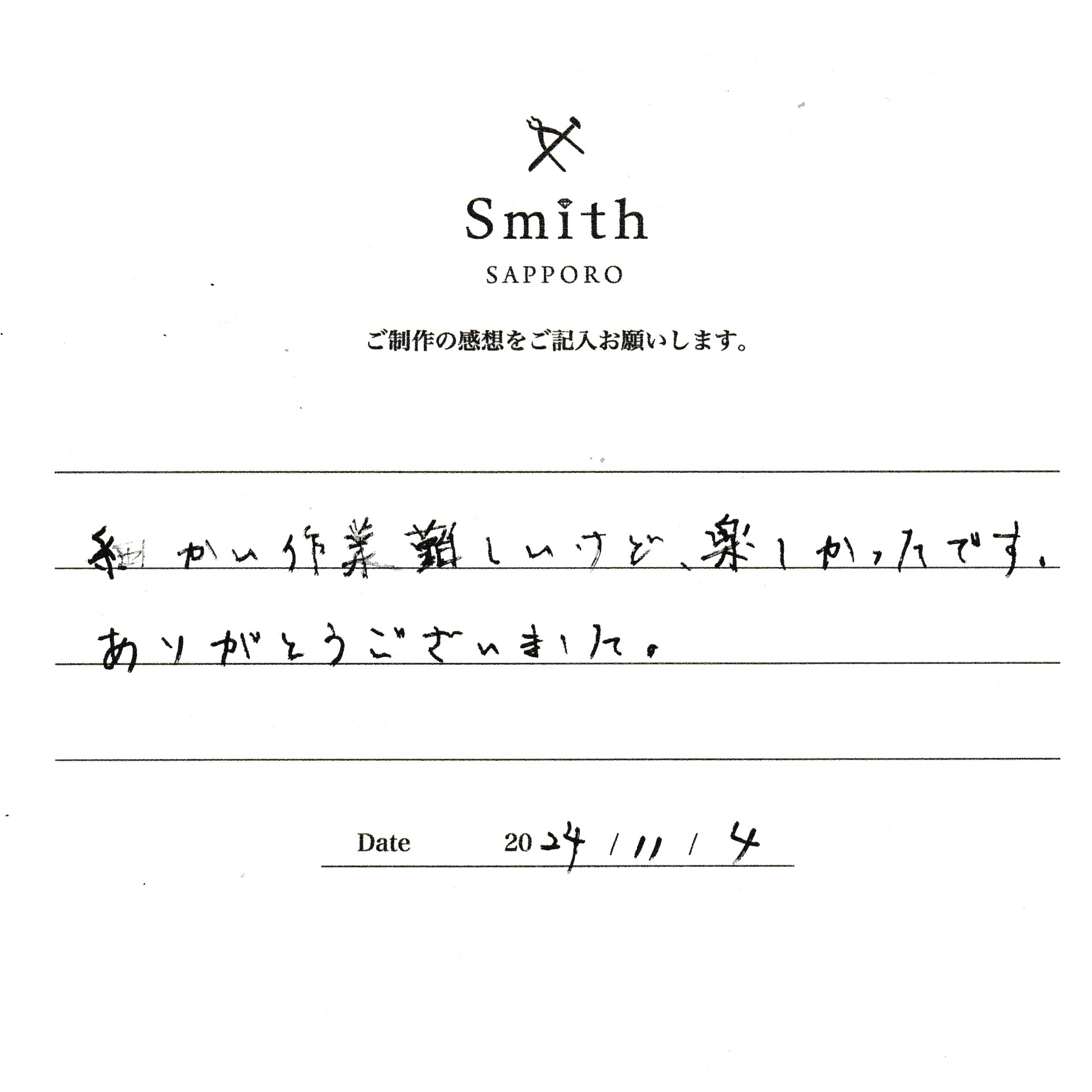 この度は、工房Smith京王プラザホテル札幌店で手作りペアリングのご制作誠にありがとうございました。