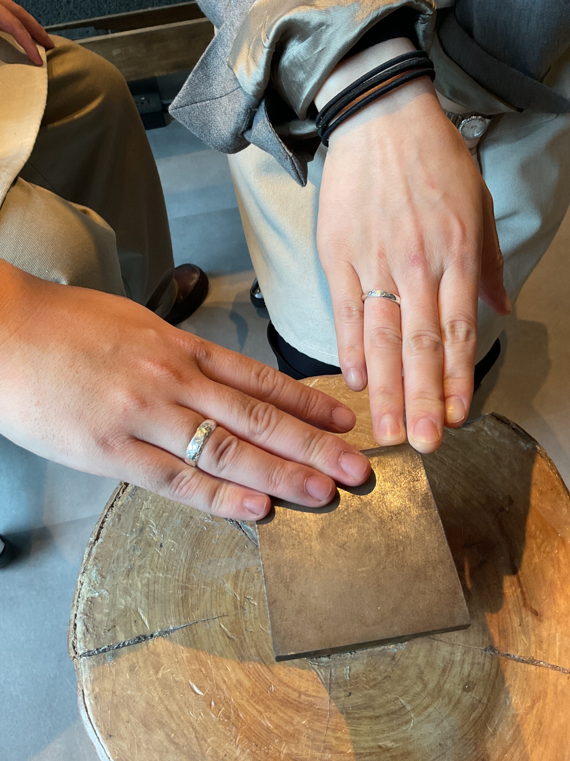 3mmと5mmの甲丸リングにテクスチャーはオリジナルハンマーをお選びいただきました。