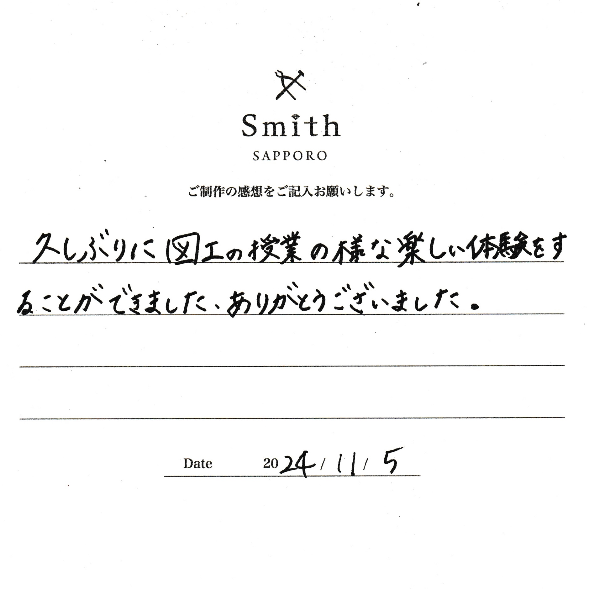 この度は、工房Smith京王プラザホテル札幌店で手作りペアリングのご制作誠にありがとうございました。