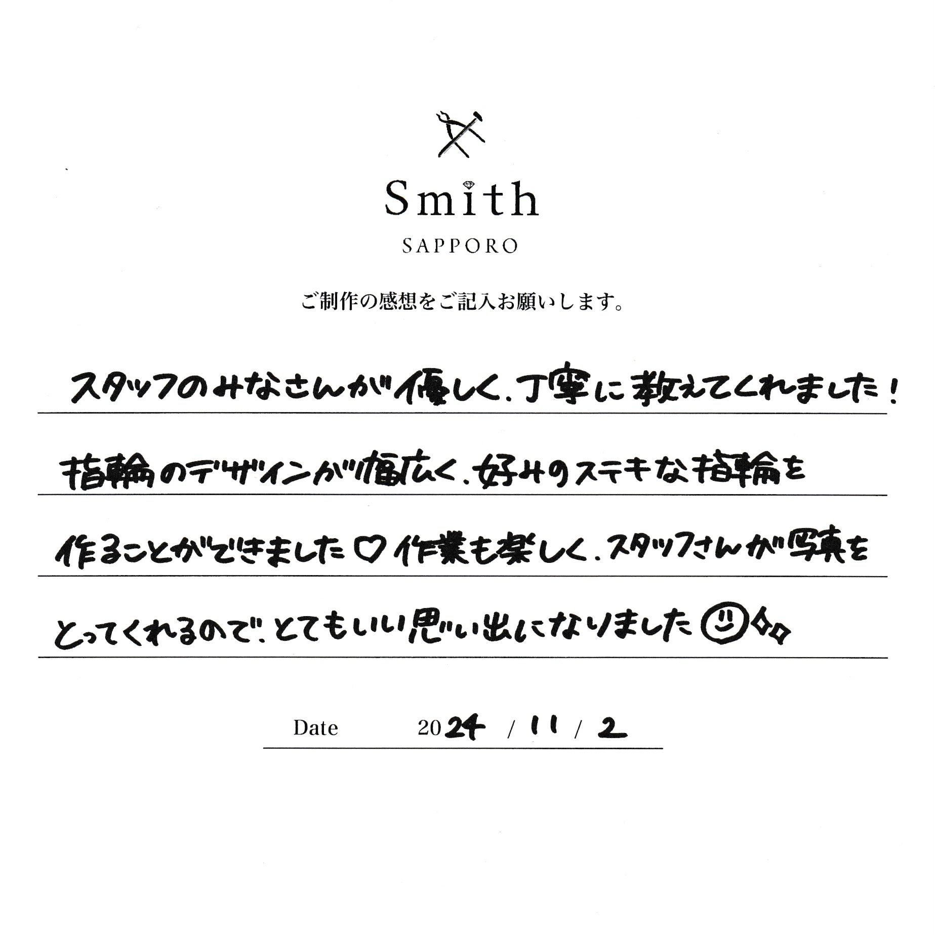 工房Smith札幌でお客様がご制作された指輪をご紹介