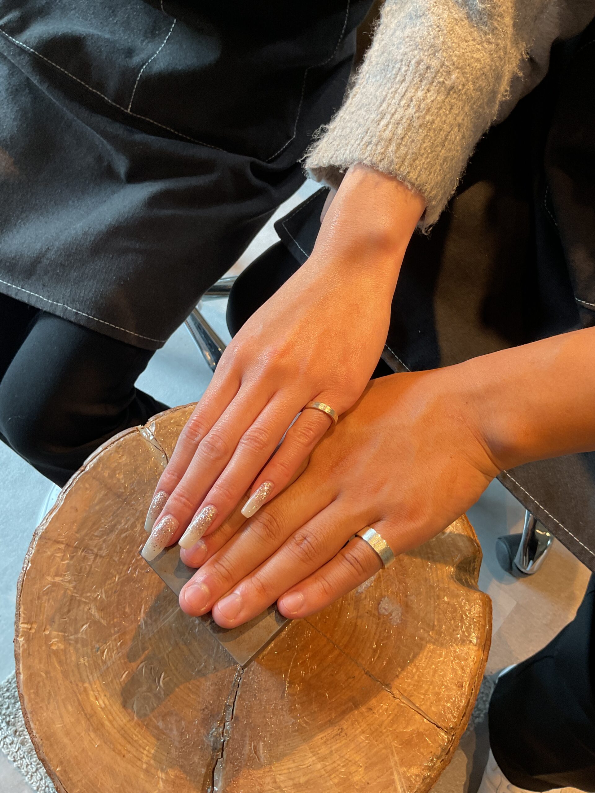 基本の形は6mmと3mmの平打リングにテクスチャーはスターダストをお選びいただきました。