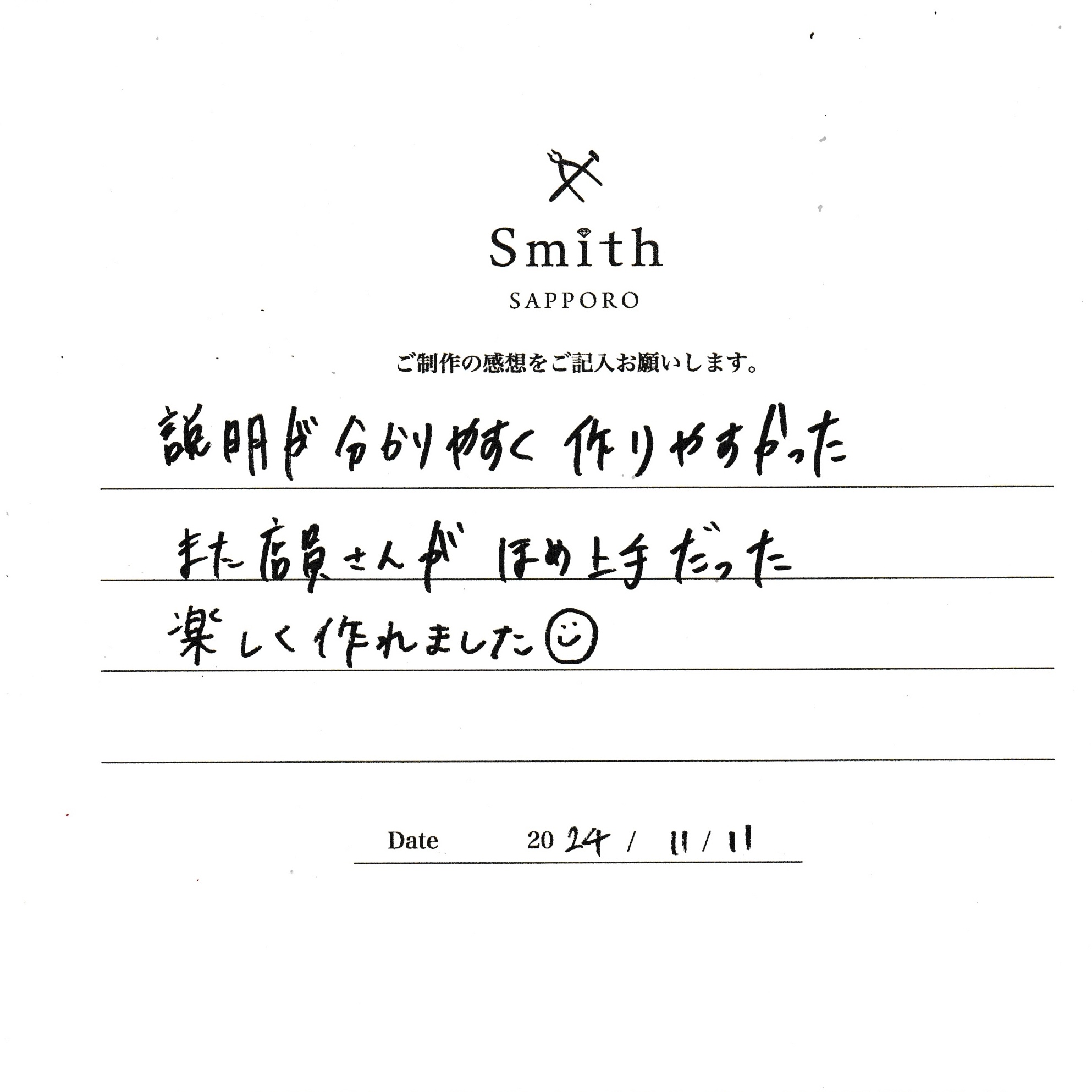 この度は、工房Smith京王プラザホテル札幌店で手作りペアリングのご制作誠にありがとうございました。