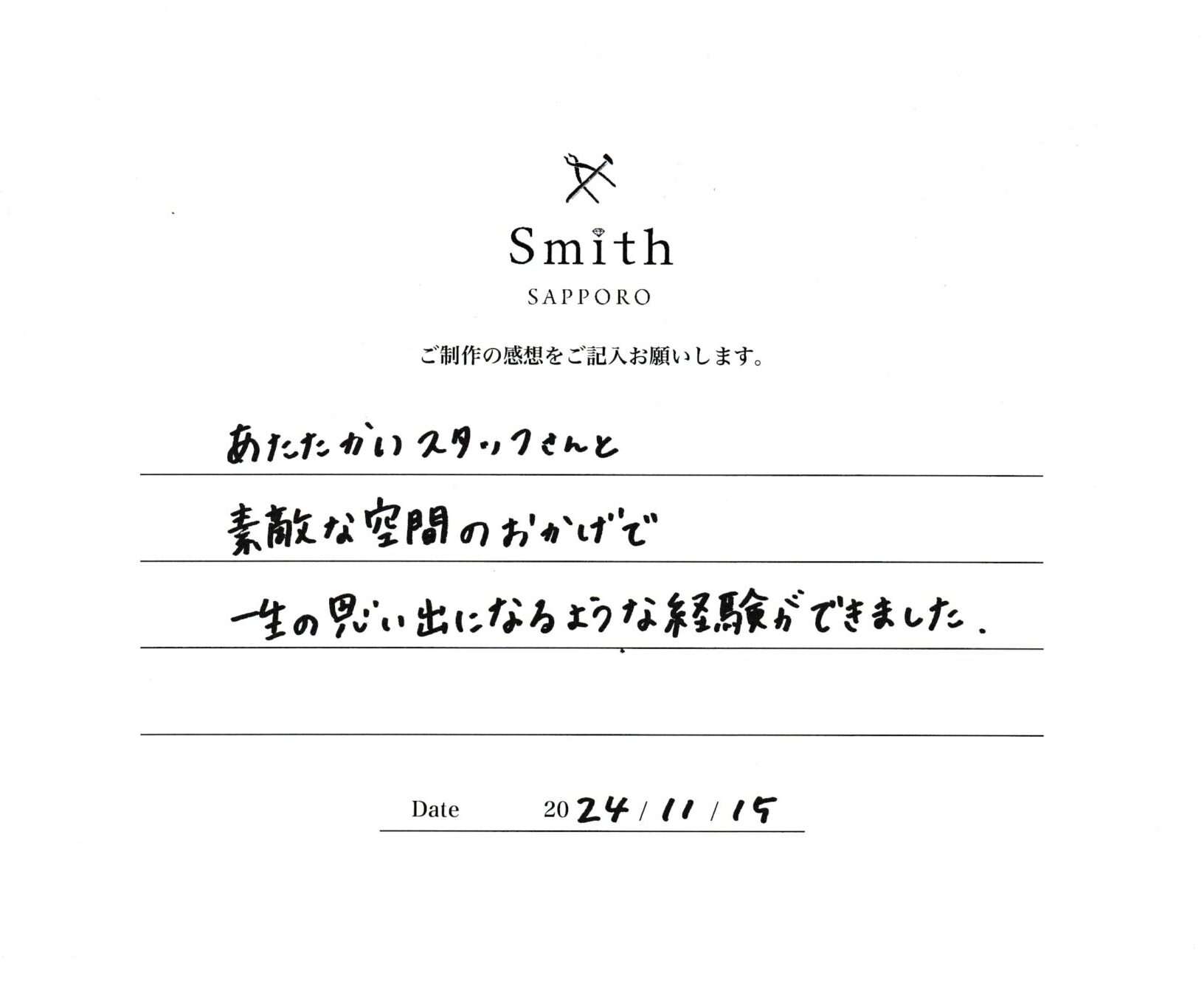 あたたかいスタッフさんと素敵な空間のおかげで、一生の思い出になるような経験ができました。