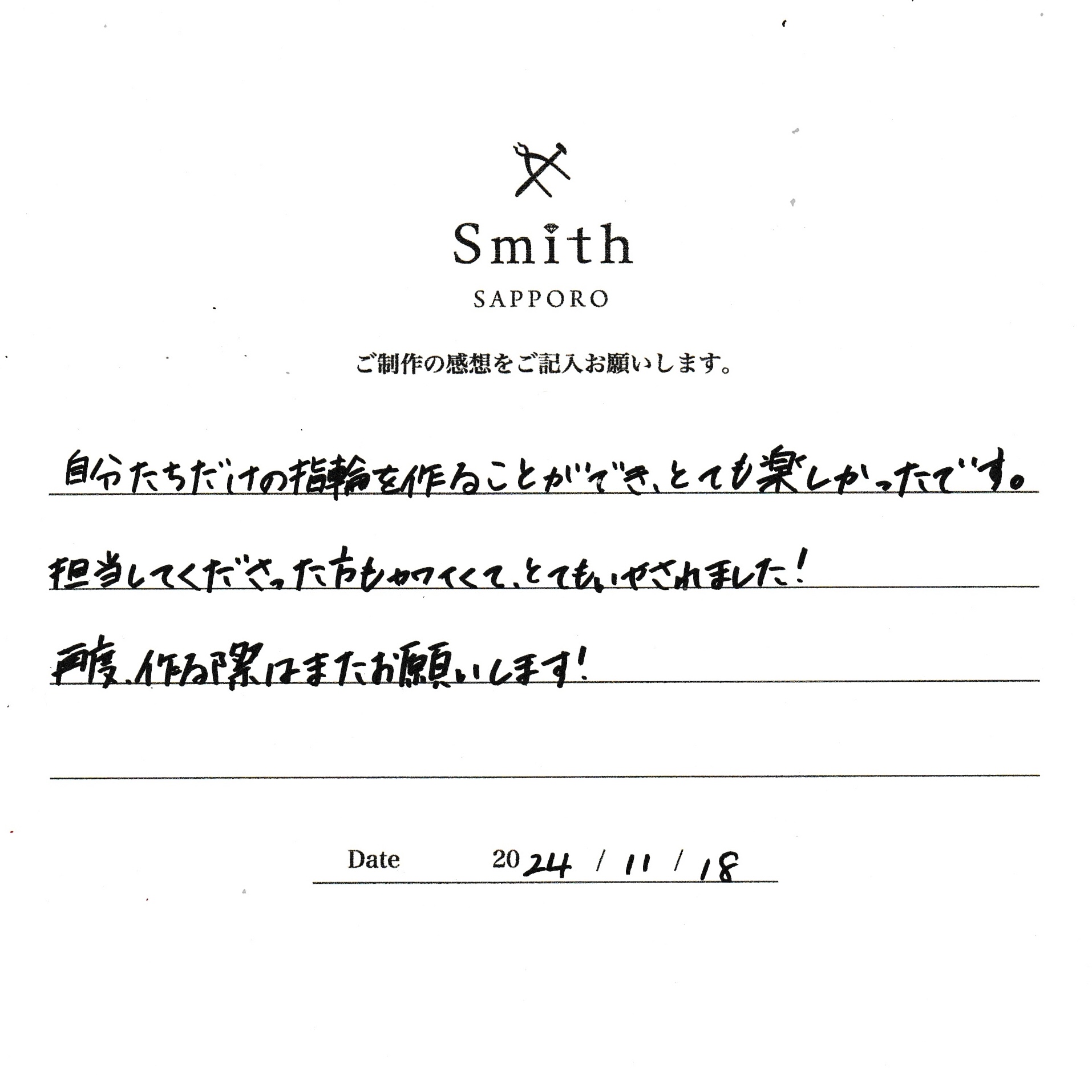 自分たちだけの指輪を作ることができて、とても楽しかったです。