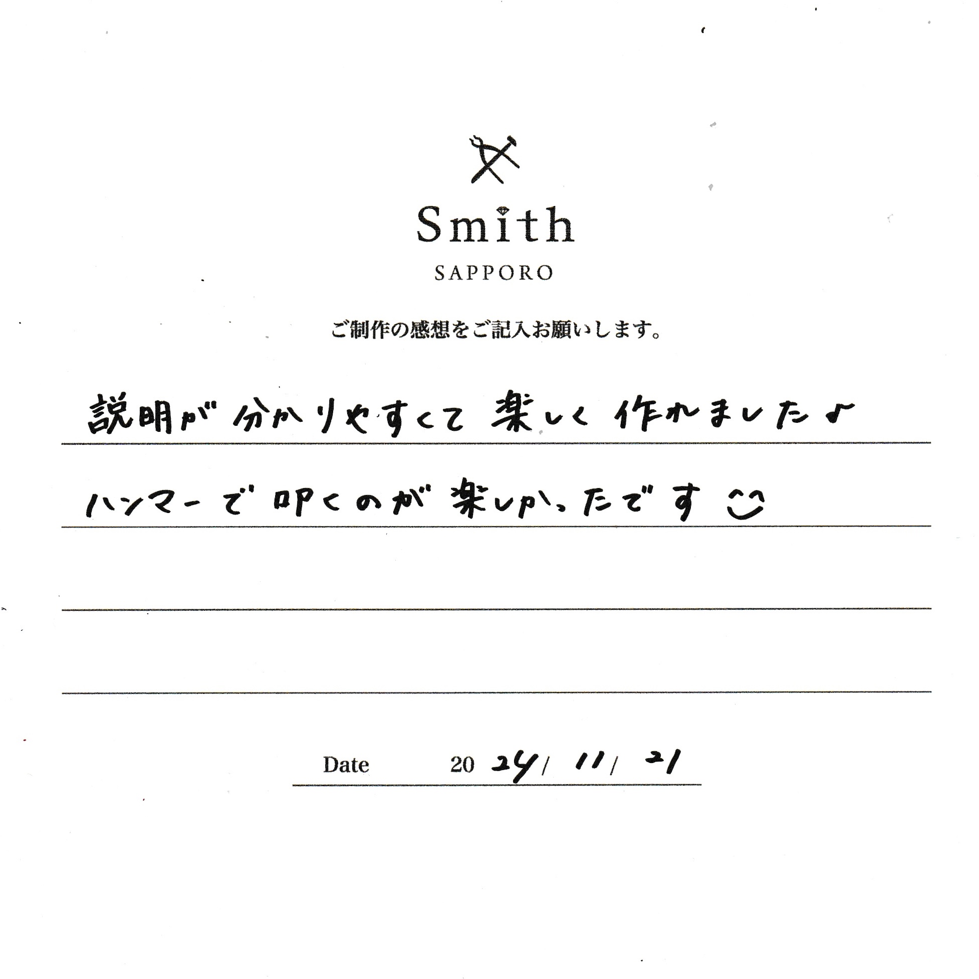 この度は、工房Smith京王プラザホテル札幌店で手作りペアリングのご制作誠にありがとうございました。