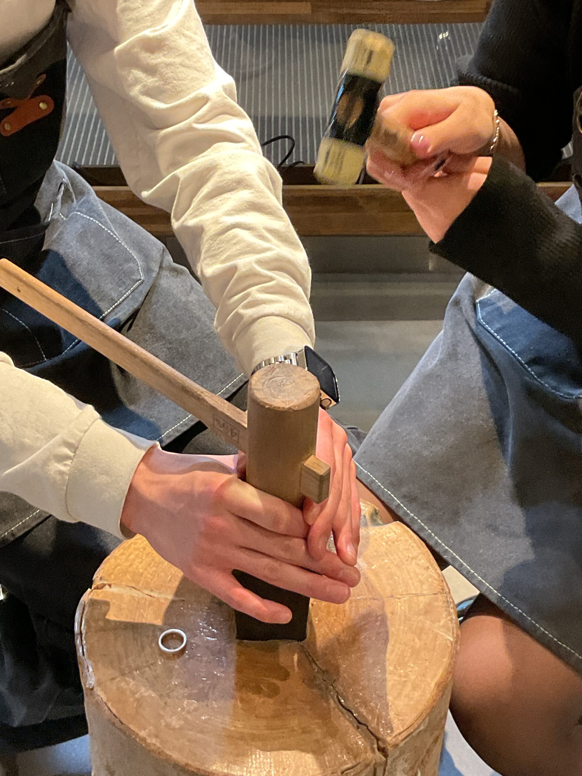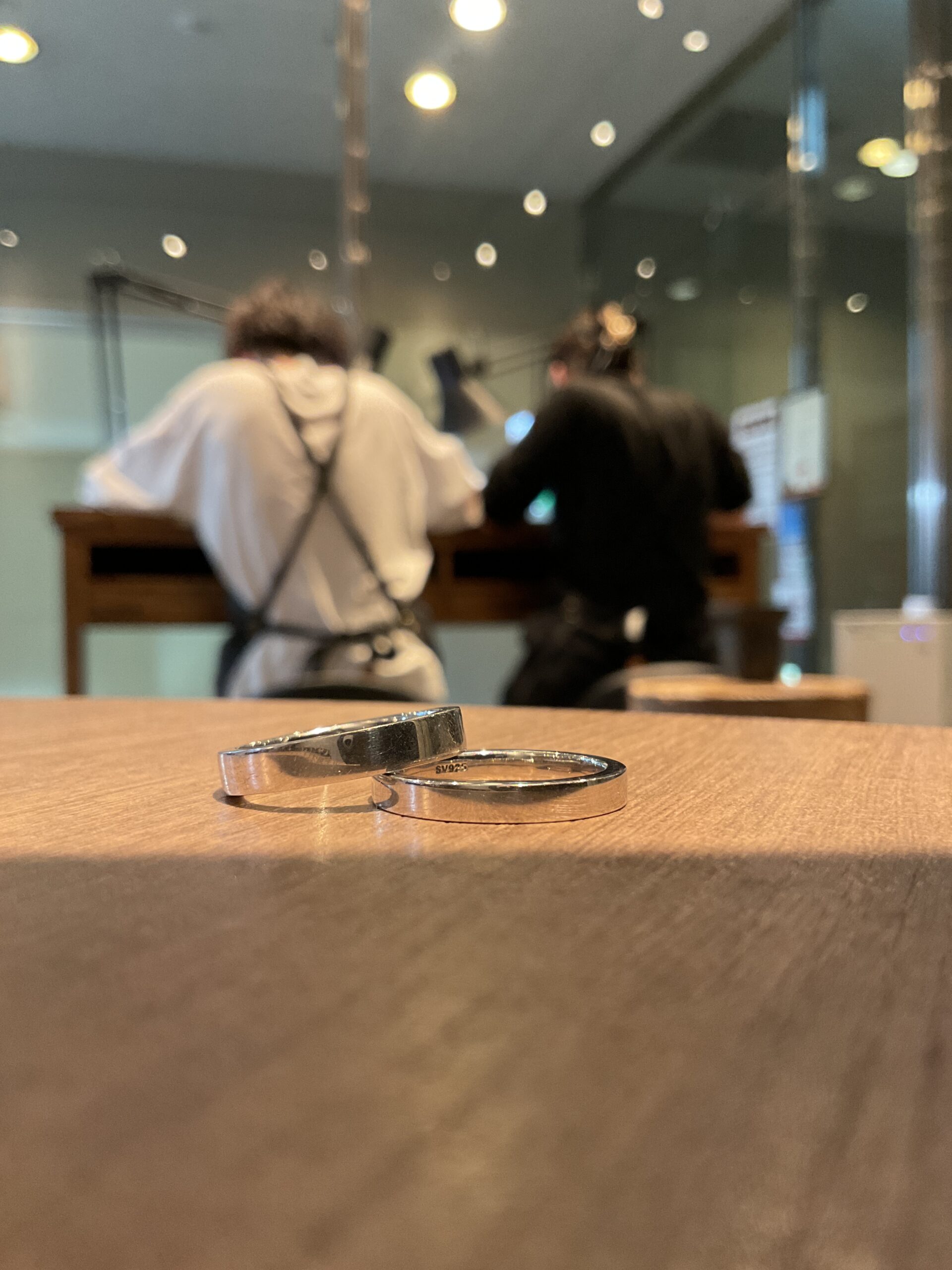 基本の形は3mmと4mmの平打ちリングにテクスチャーは鏡面をお選びいただき、ピカピカになるまで磨いていただきました。