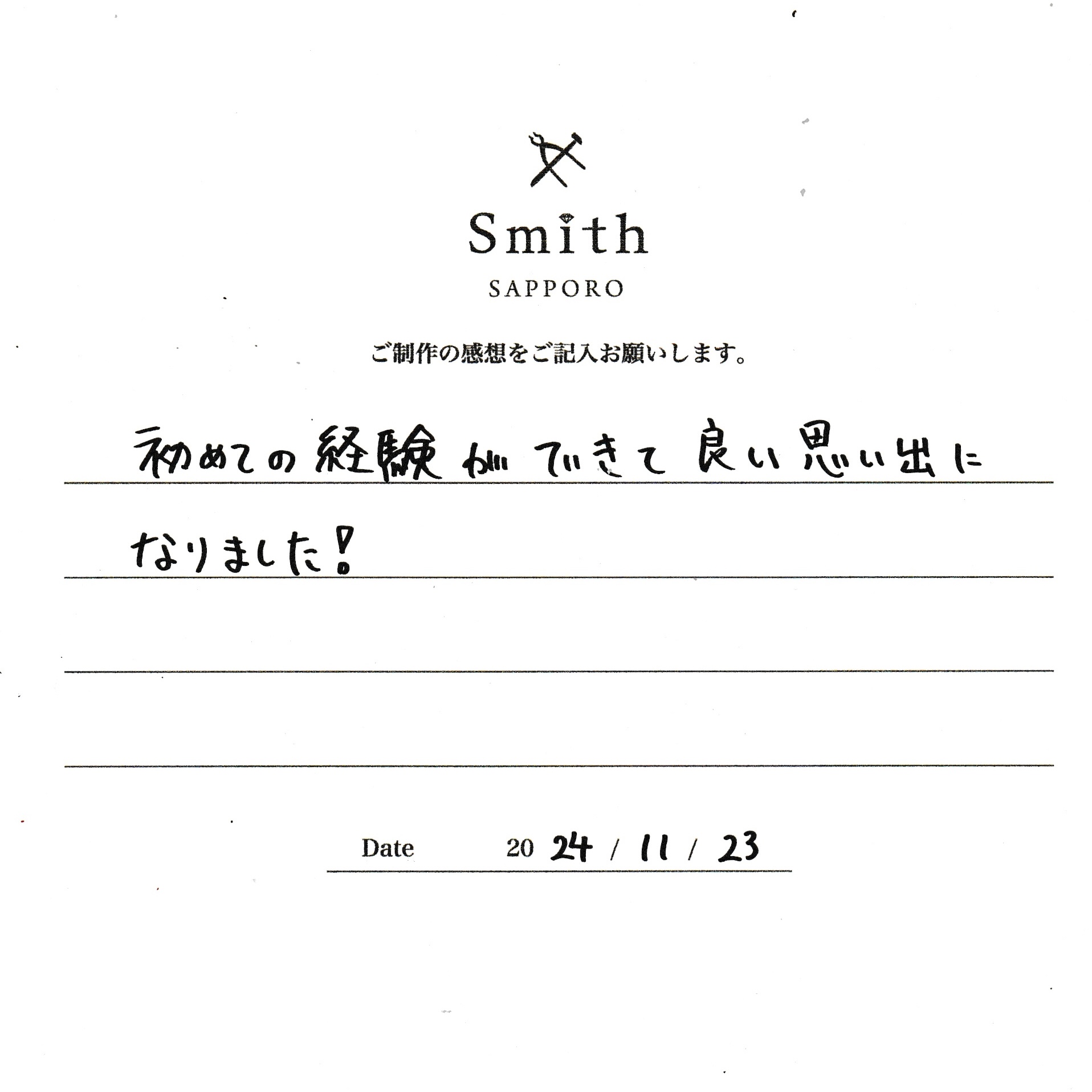 この度は、工房Smith京王プラザホテル札幌店で手作りペアリングのご制作誠にありがとうございました。