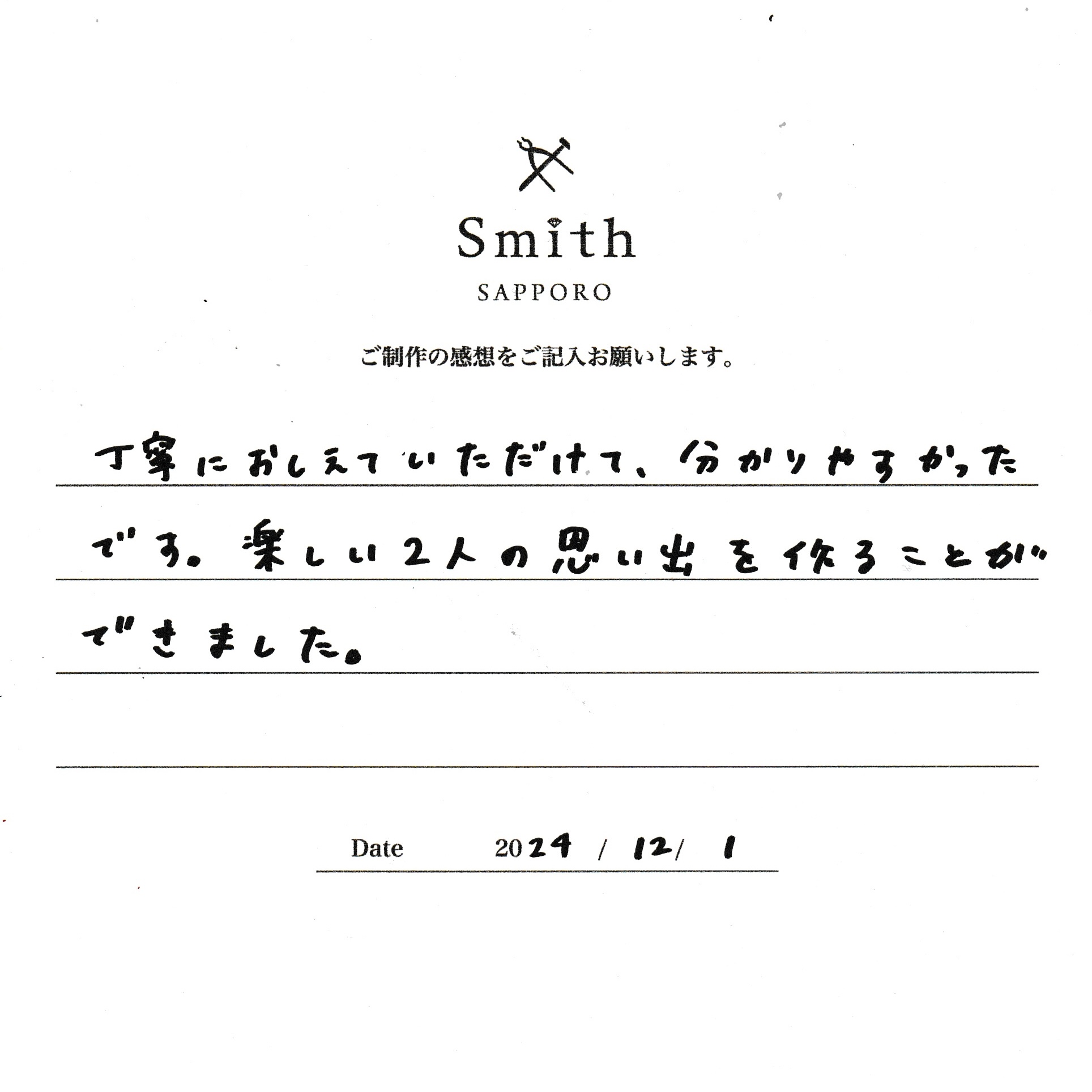 本日は数あるお店の中から大切なペアリングご制作に当店をお選びいただきありがとうございます。