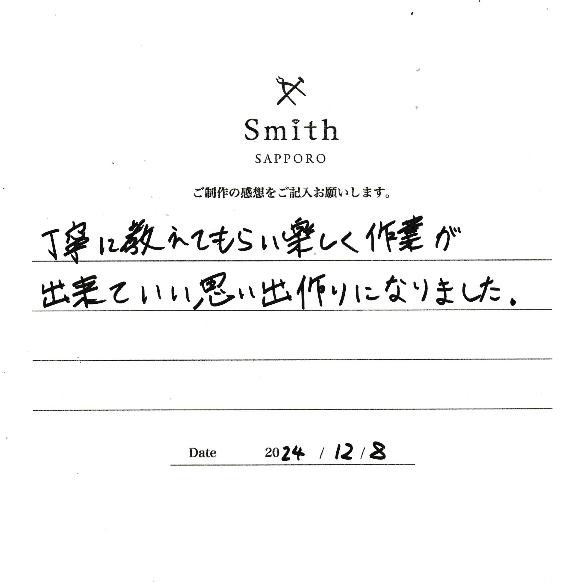 丁寧に教えてもらい楽しく作業が出来て良い思い出になりました。