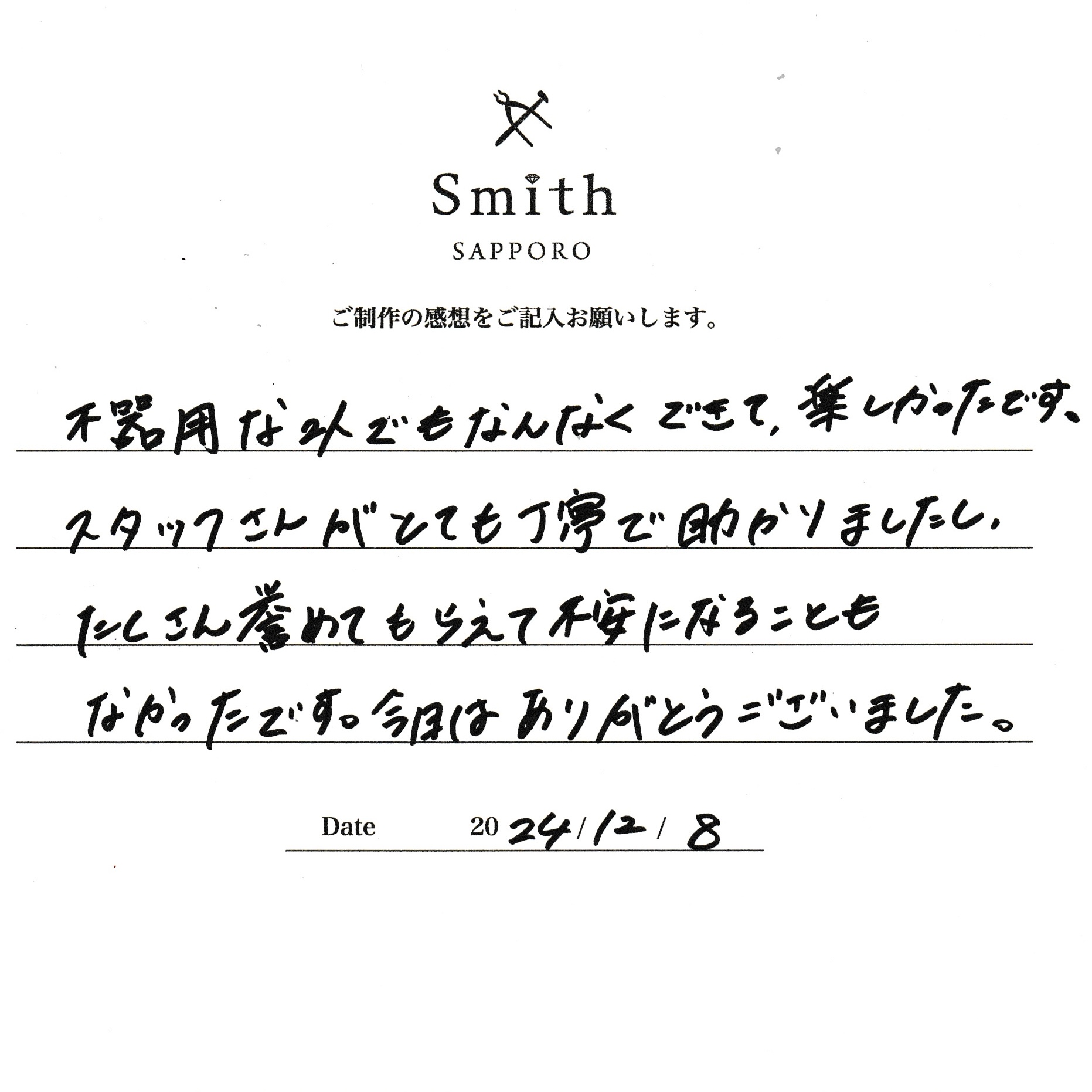 またのご来店をスタッフ一同、心よりお待ちしております。