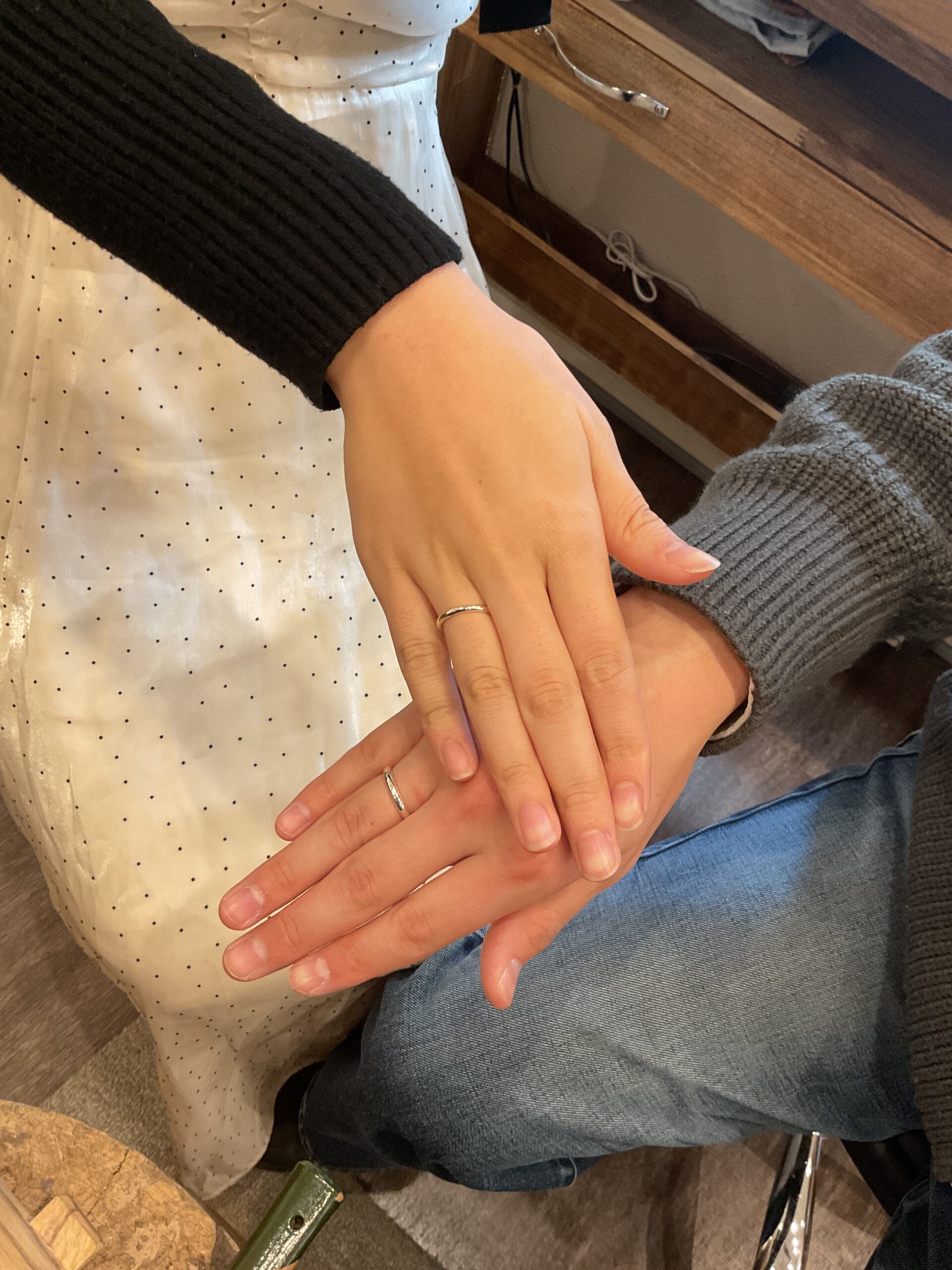 基本の形は2mmと3mmの甲丸リングにテクスチャーは鏡面をお選びいただき、ピカピカになるまで磨いていただきました。