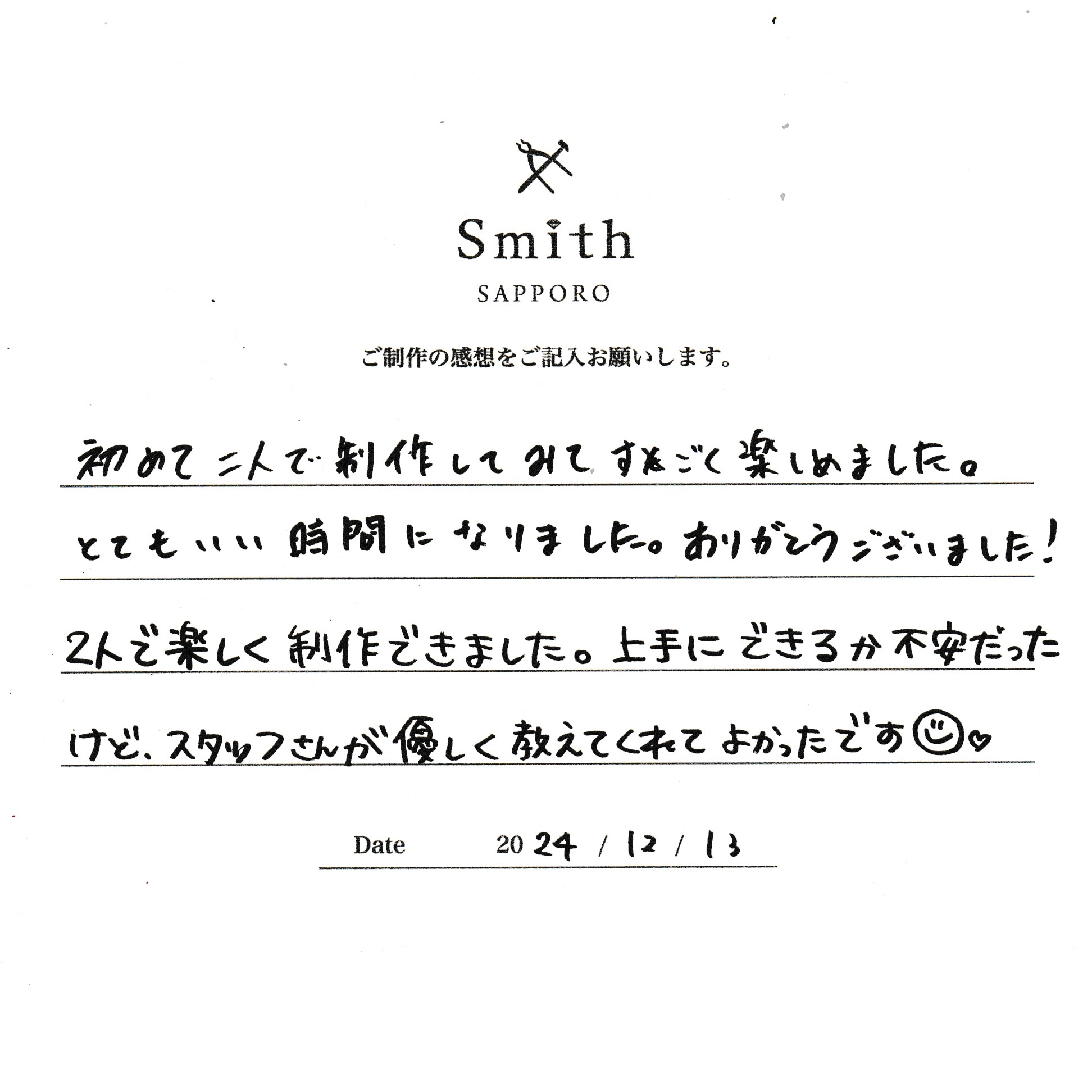 この度は、工房Smith京王プラザホテル札幌店で手作りペアリングのご制作誠にありがとうございました。