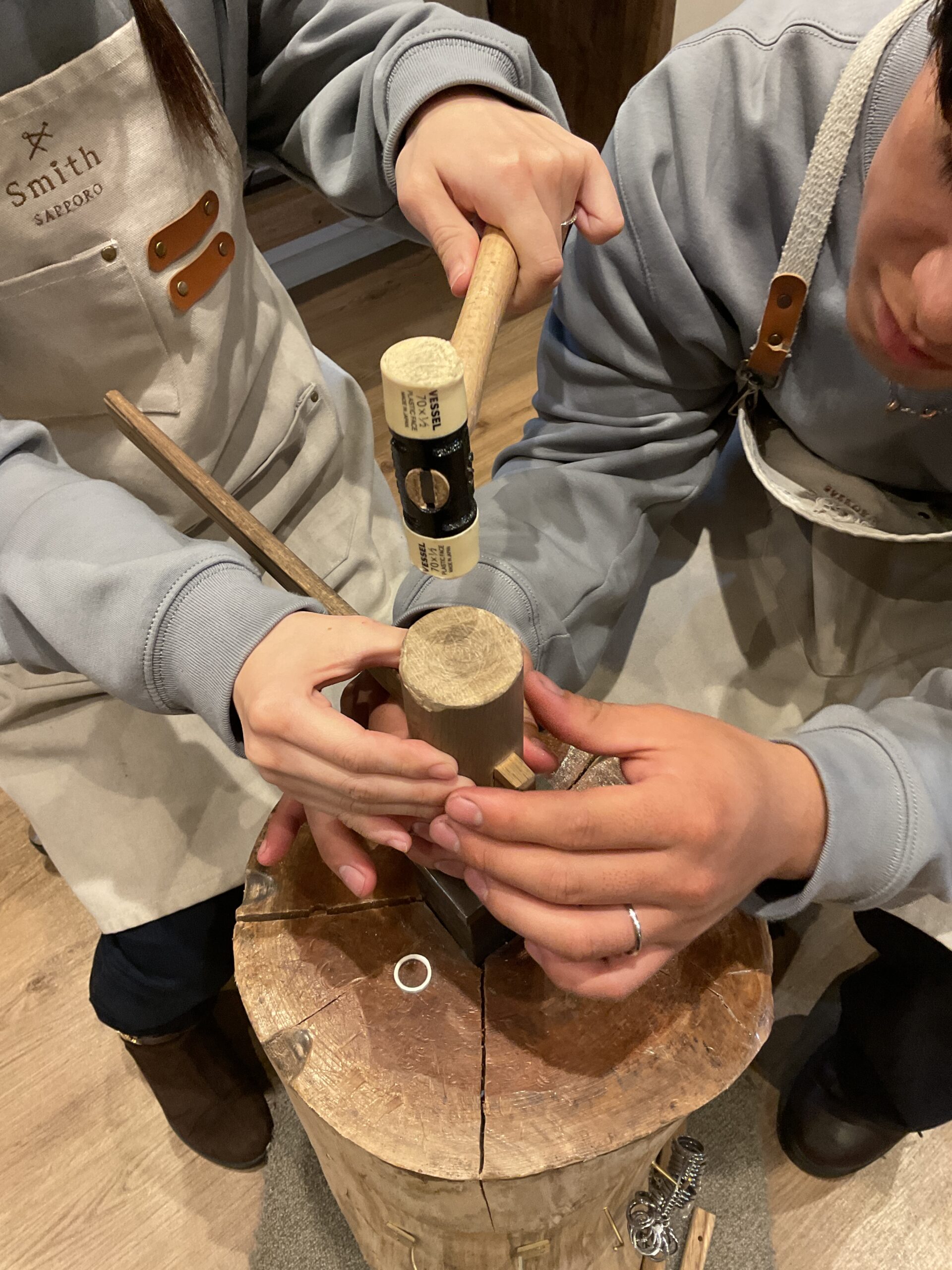 基本の形は3mmの平打ちリングにテクスチャーは鏡面をお選びいただき、ピカピカになるまで磨いていただきました。