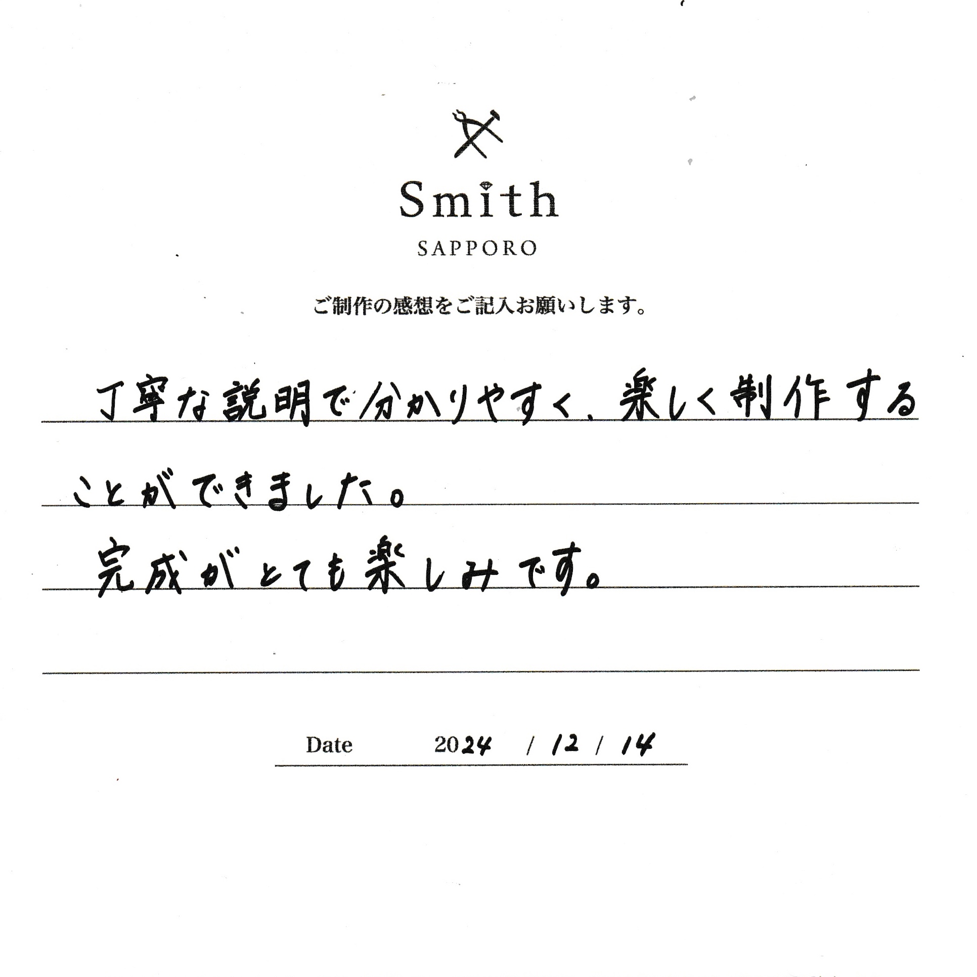 丁寧な説明で分かりやすく、楽しく制作することができました。