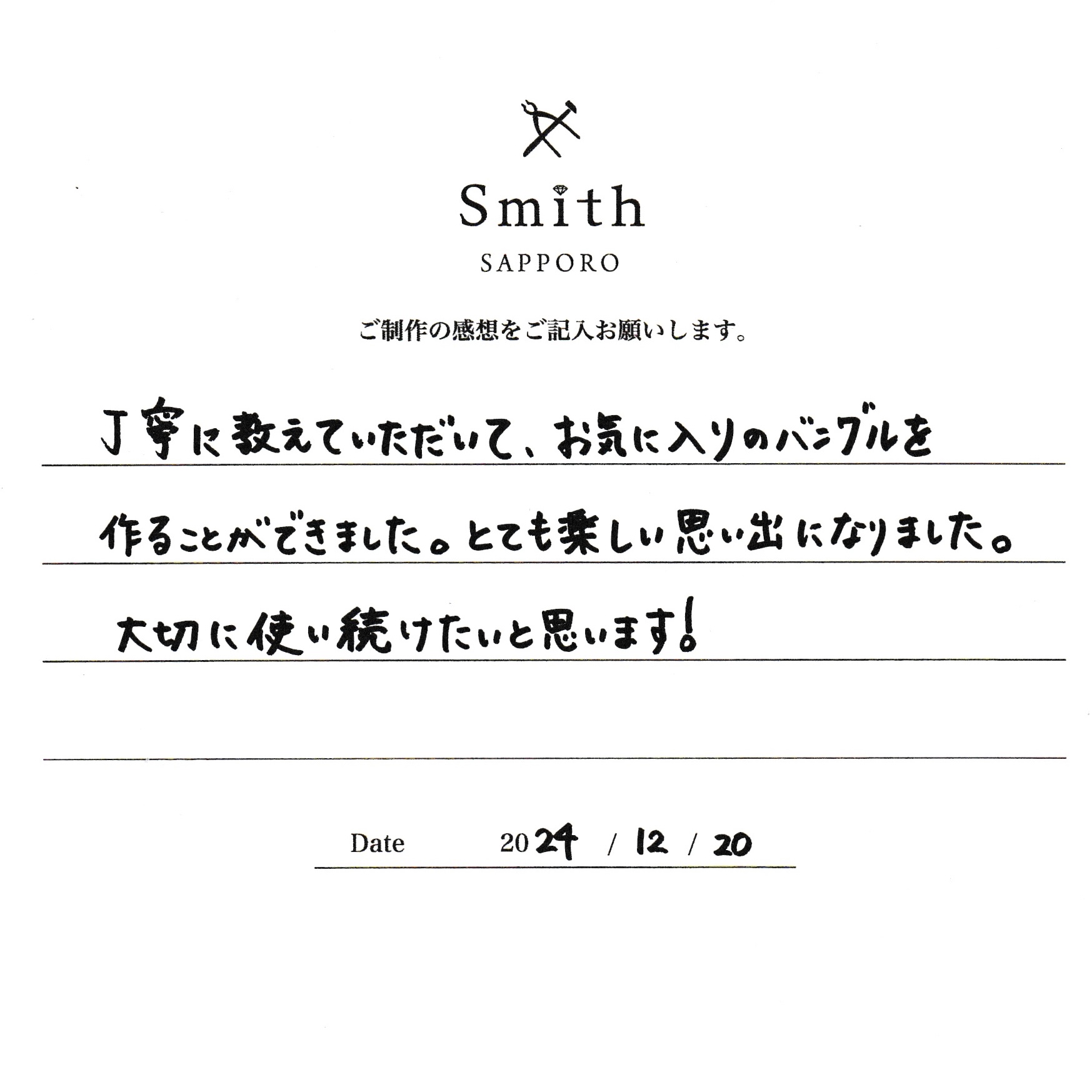 この度は当店へ手作りシルバーバングルのご制作にお越しいただきまして誠にありがとうございます。