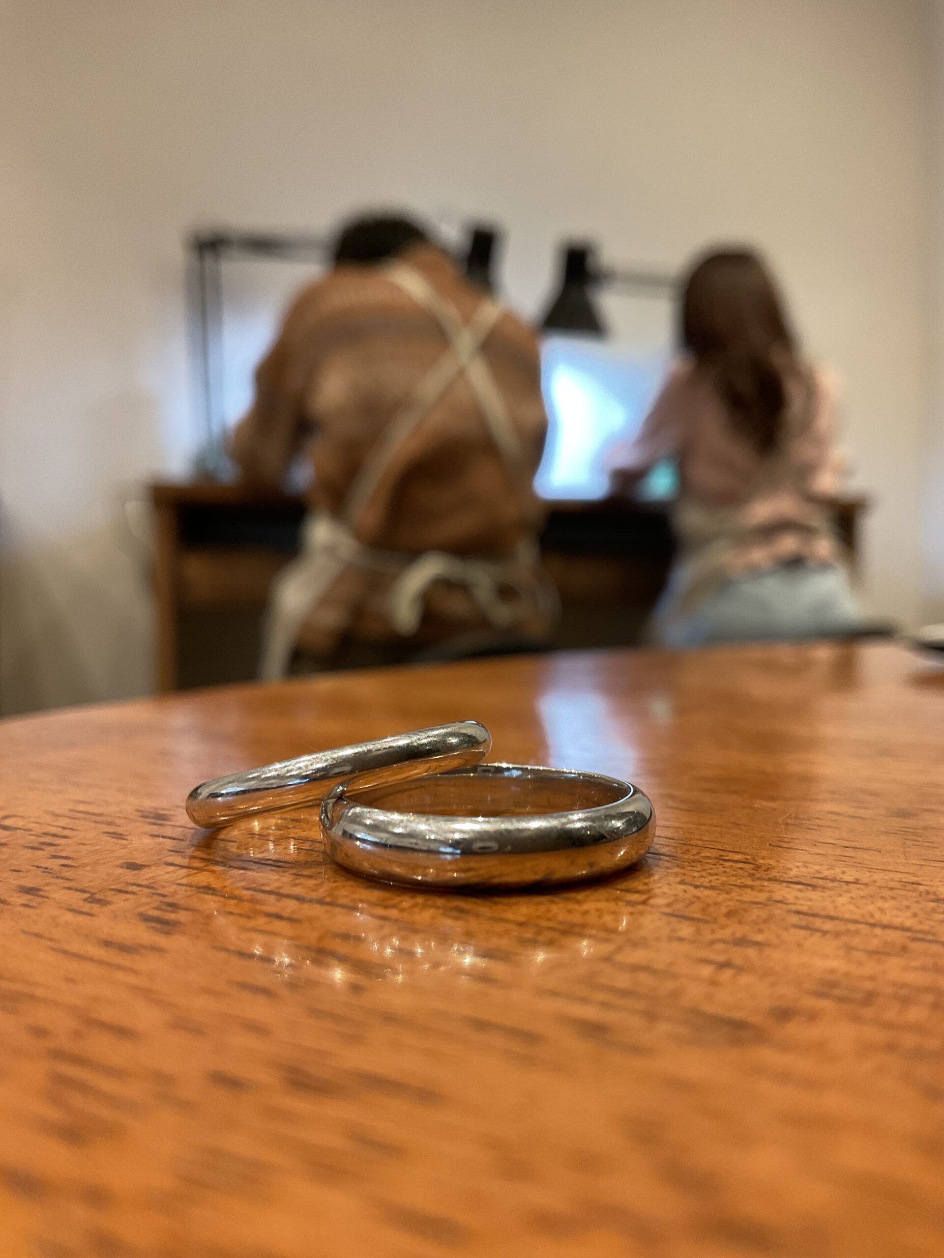 基本の形は3mmの甲丸リングにテクスチャーは鏡面をお選びいただき、ピカピカになるまで磨いていただきました。