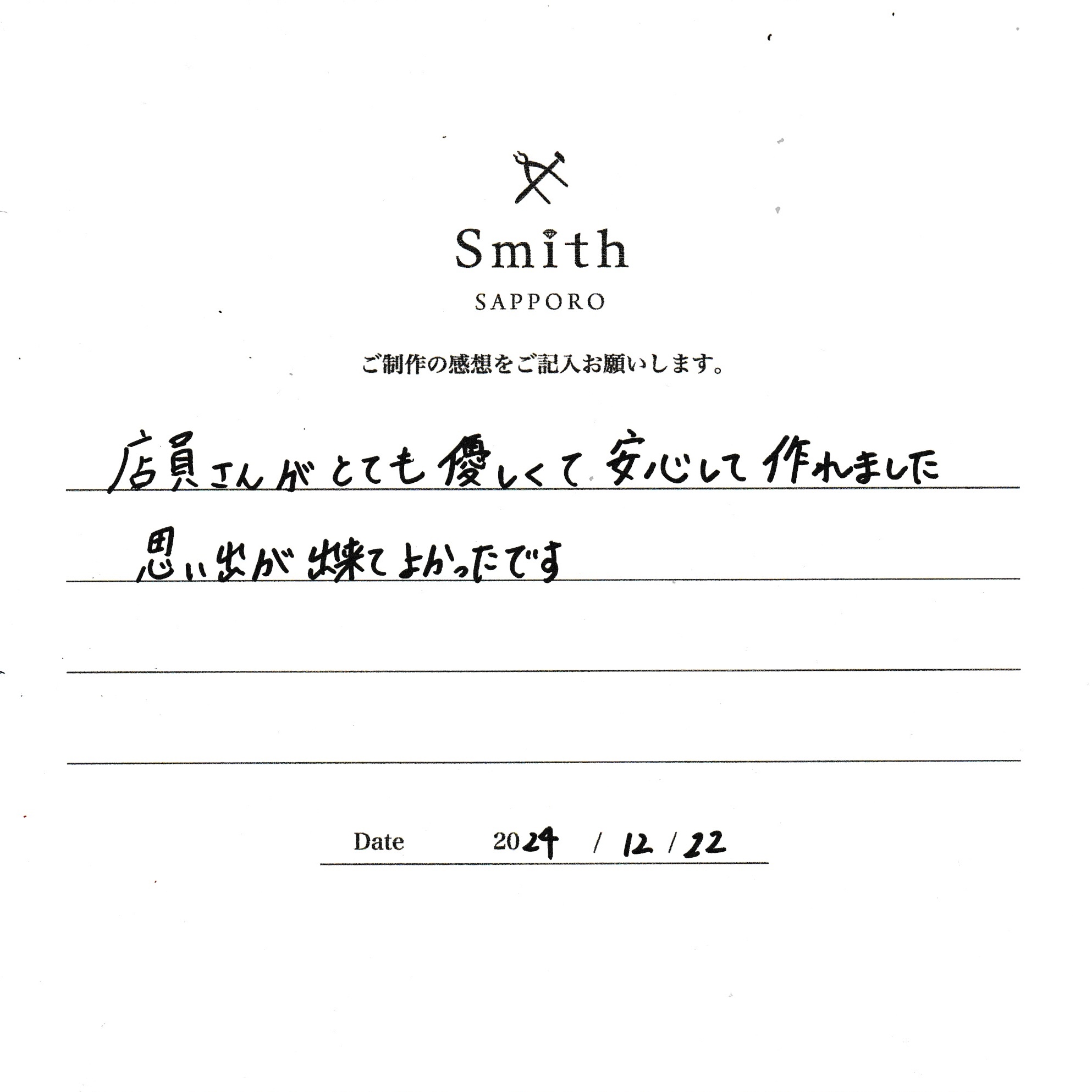 店員さんがとても優しくて安心して作れました。