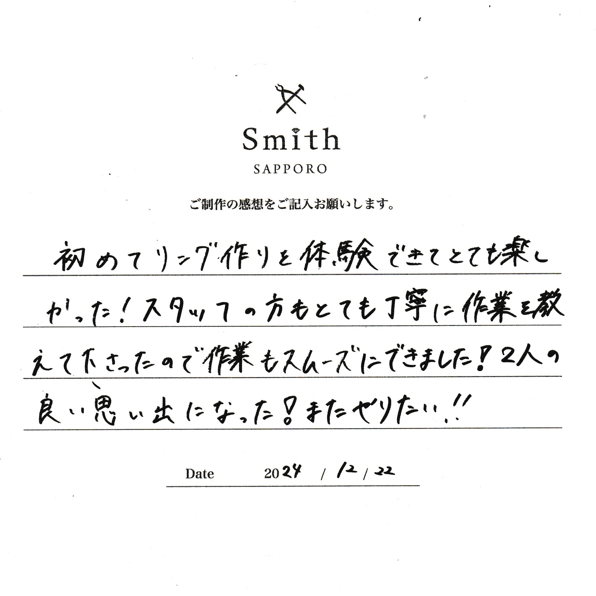 初めてリング作りを体験できてとても楽しかった!