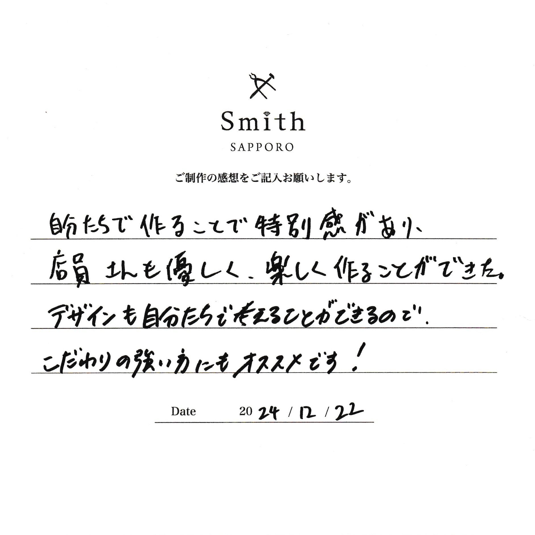 この度は手作り婚約指輪のご制作に当店をお選びいただき誠にありがとうございます。