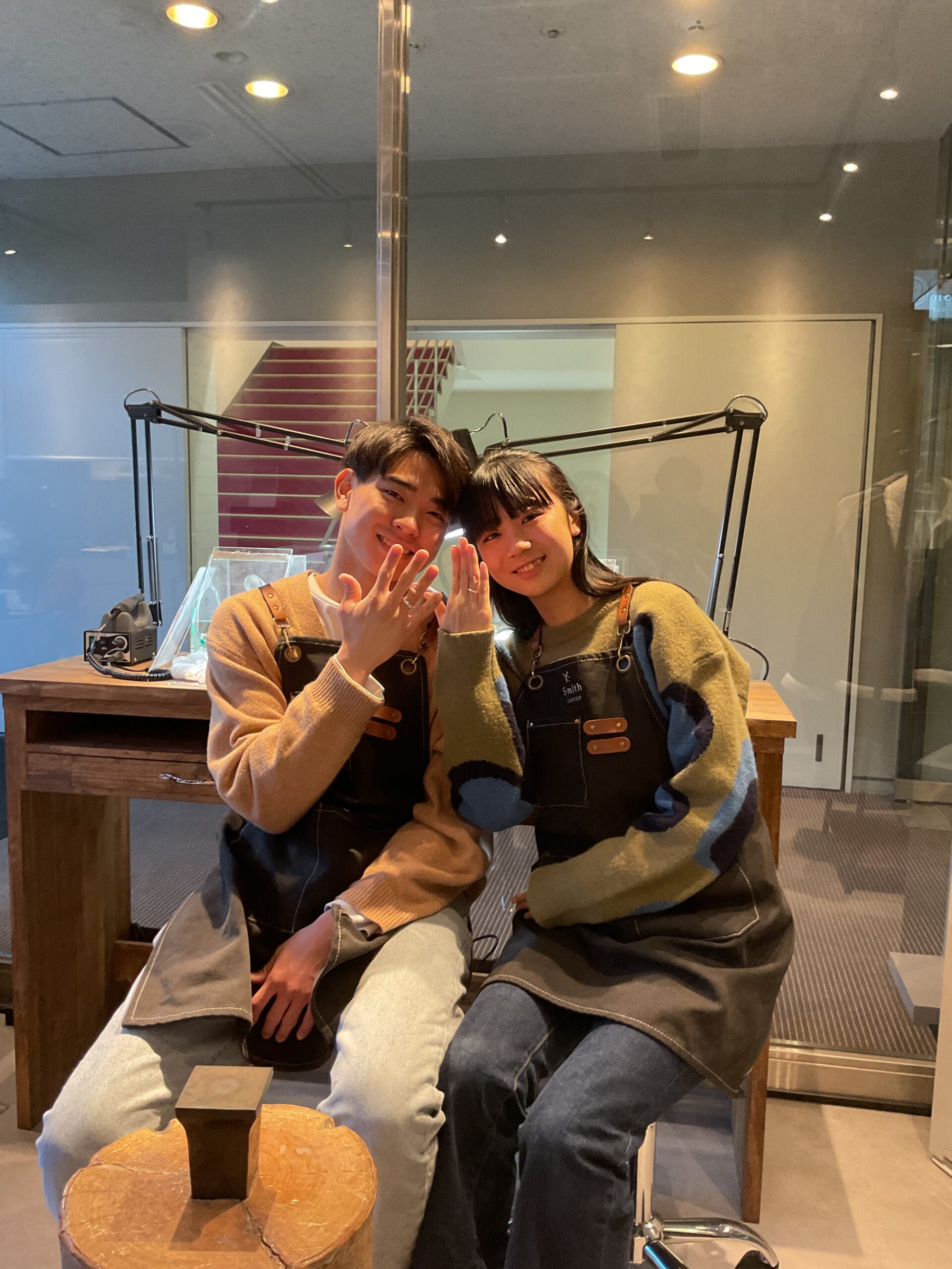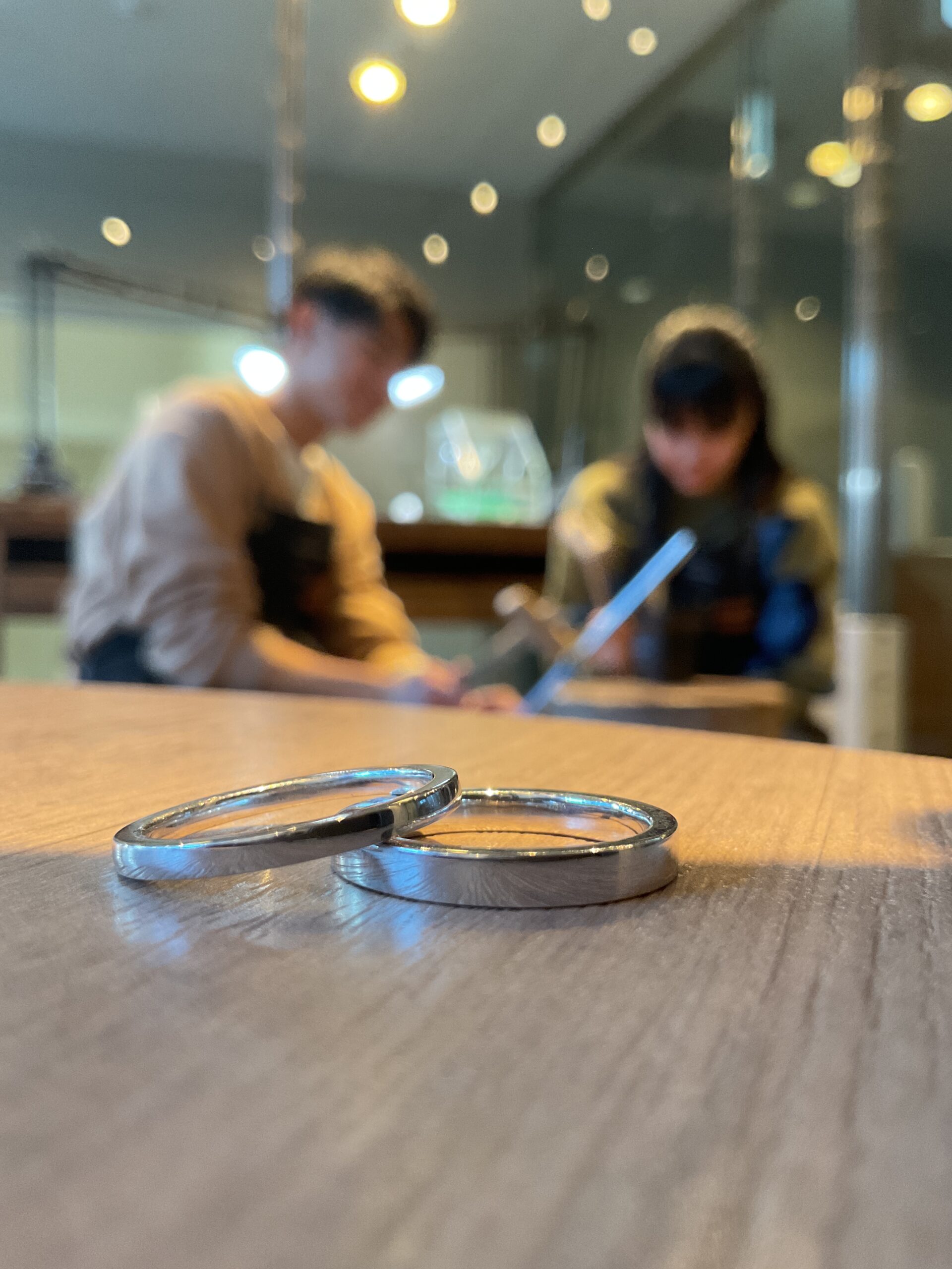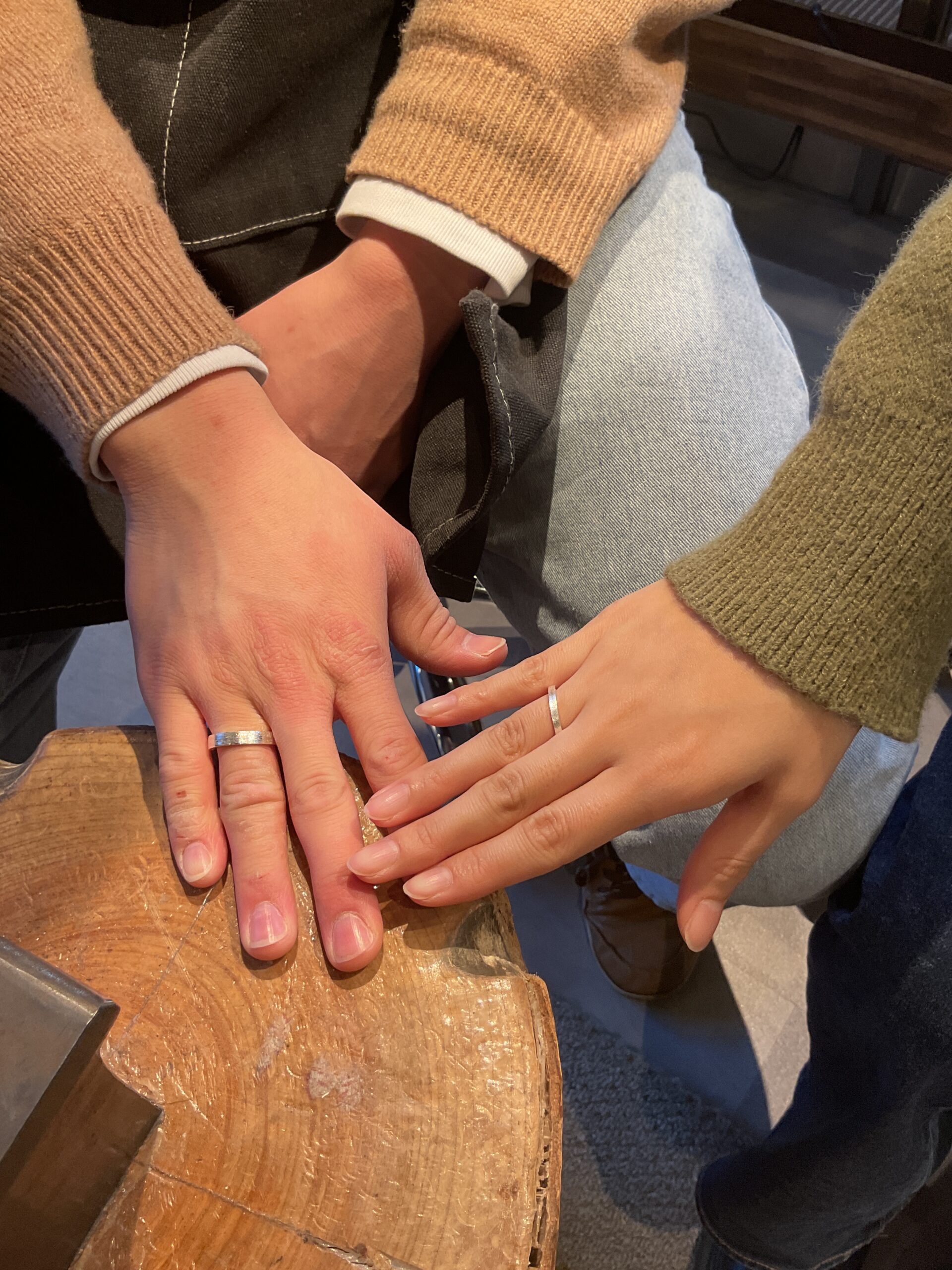 内側にはお二人のお揃いの記念日とイニシャルが入り、とても素敵なリングになりましたね。