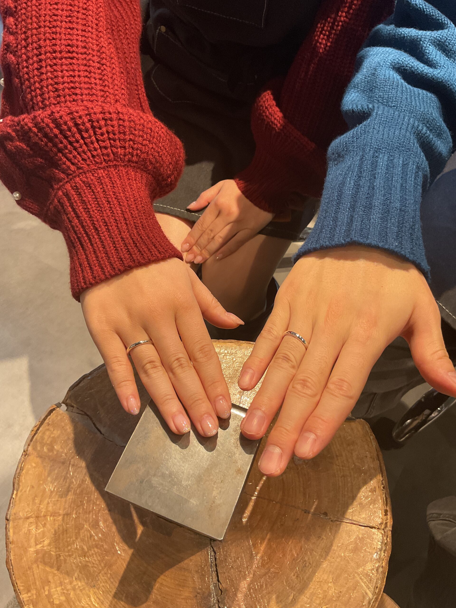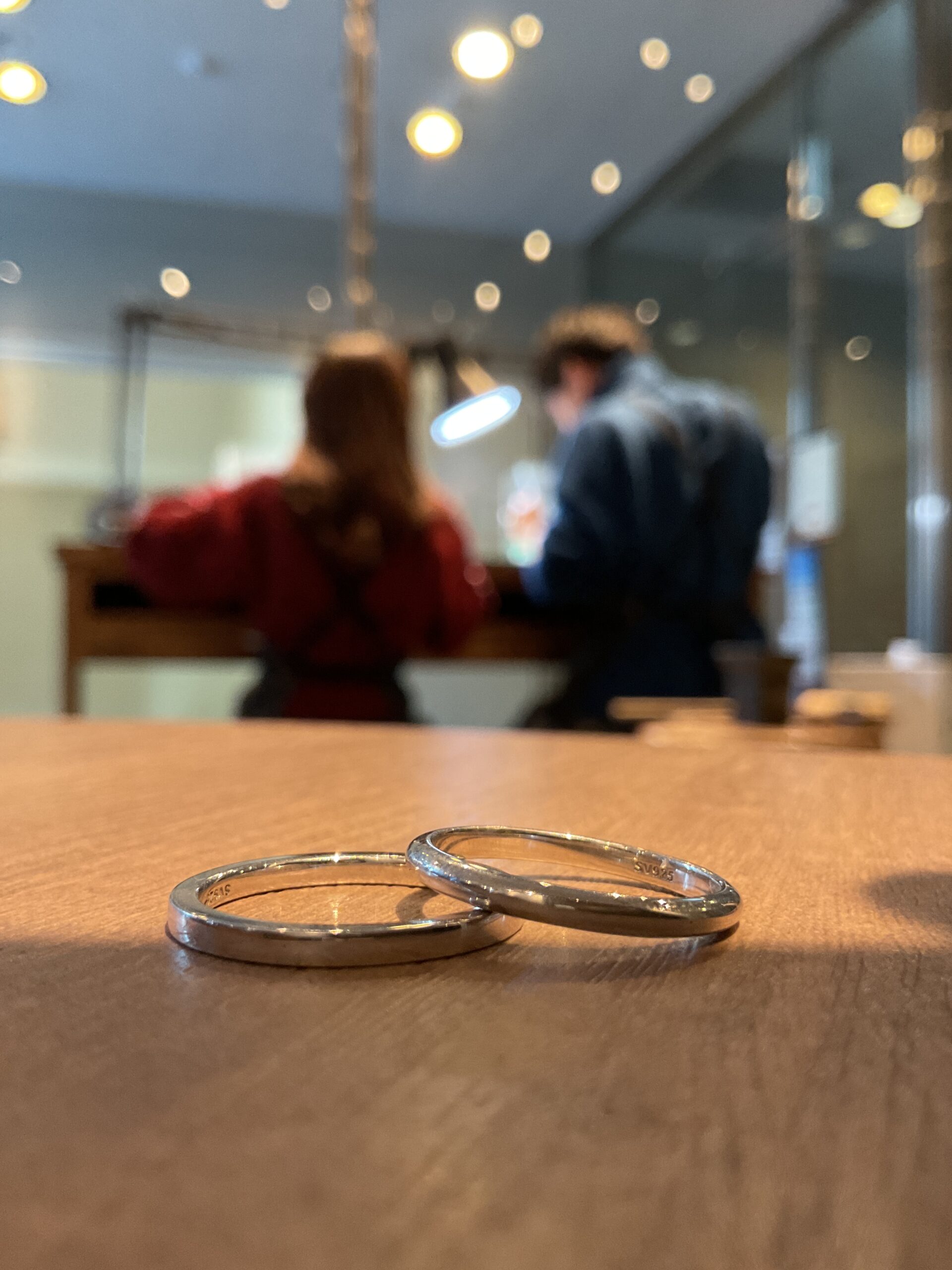 基本の形は2mmと3mmの甲丸リングにテクスチャーは鏡面をお選びいただき、ピカピカになるまで磨いていただきました。